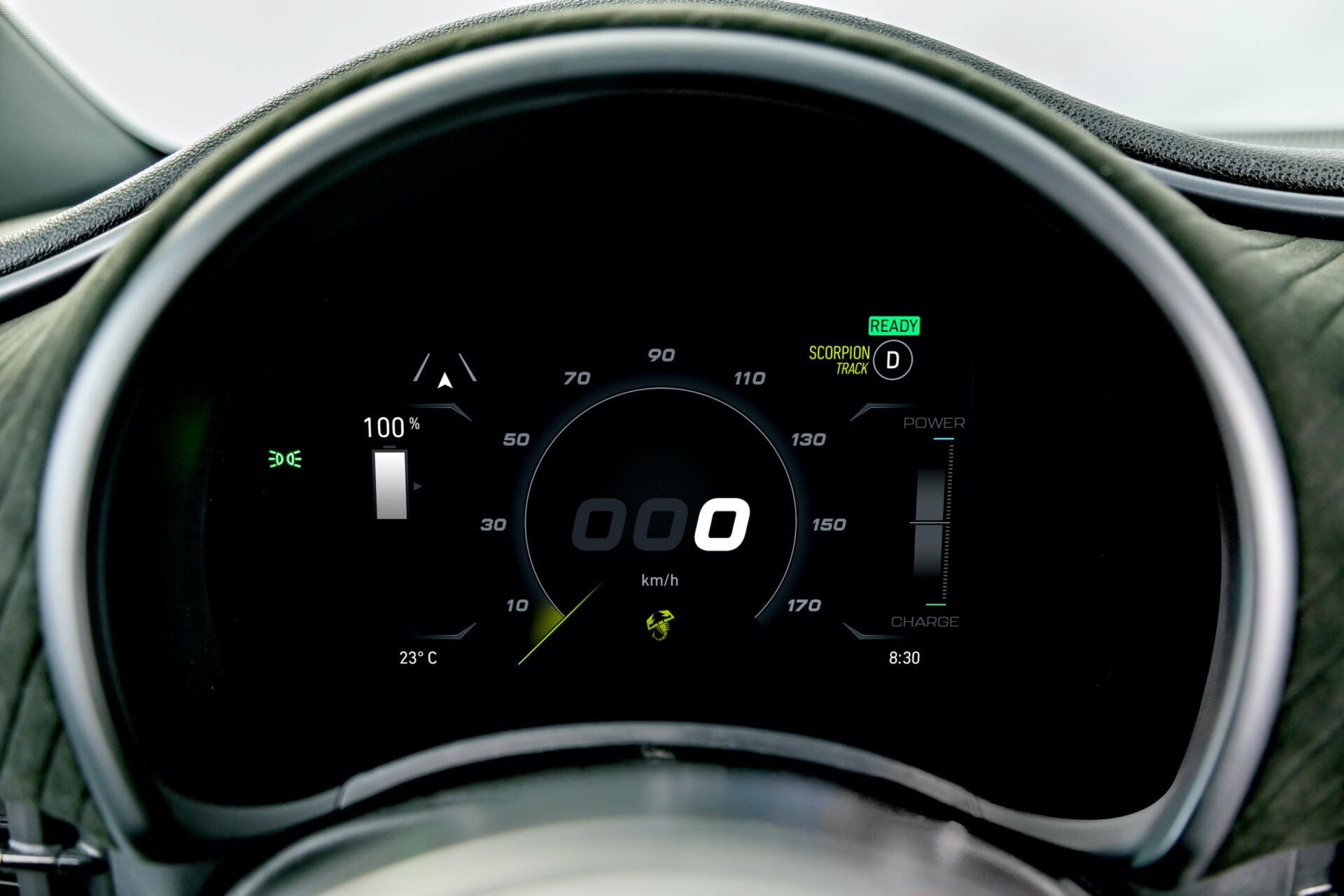 L’esclusività e la sportività dei materiali si ritrovano anche nella nuova fascia della plancia in Alcantara goffrata che unisce un’estetica lussuosa a un design funzionale e si abbina perfettamente agli inserti del volante e ai sedili sportivi. La pelle di alta qualità con inserti in Alcantara e il logo dello Scorpione impreziosiscono il volante sportivo a tre razze, che si ispira al mondo delle corse con la sezione inferiore tagliata. Anche i pannelli delle portiere e il bracciolo centrale presentano una doppia cucitura sportiva. La nuova Abarth 500e Scorpionissima è dotata anche dei sedili anteriori e parabrezza riscaldati, sedile del guidatore regolabile in altezza e sedili posteriori ribaltabili e frazionati 50/50. È di serie l’infotainment Uconnect Radio Touchscreen con schermo da 10,25 pollici che ospita anche il sistema di navigazione e le nuovissime Performance Pages, un display high-tech con nuove ed entusiasmanti grafiche Abarth.