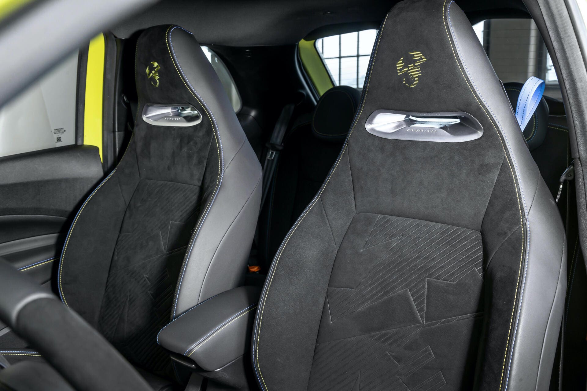 Il design dei nuovi sedili sportivi è arricchito da uno scorpione in rilievo in Alcantara, un materiale che è in grado di garantire un aspetto sportivo e il massimo comfort grazie al poggiatesta integrato con uno scorpione verde acido inciso al laser sull’Alcantara e alle doppie cuciture sportive.
