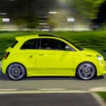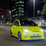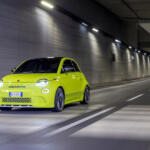Rimane pressoché immutata anche la firma luminosa a LED dei fari anteriori proveniente dalla Nuova 500 Elettrica, sebbene sulla Abarth 500e c’è una diversa caratterizzazione dell’elemento luminoso circolare che esclude il tratto presente sul cofano motore che ora viene “occluso” da una modanatura utile a garantire uno sguardo più dinamico al frontale. Non mancano i freni a disco sia davanti, dove sono ventilati, che dietro e le nuove scritte in Grigio Titanio scuro come il logo proposto sulle fiancate; il tetto è in vetro, fisso, e i vetri posteriori sono oscurati.