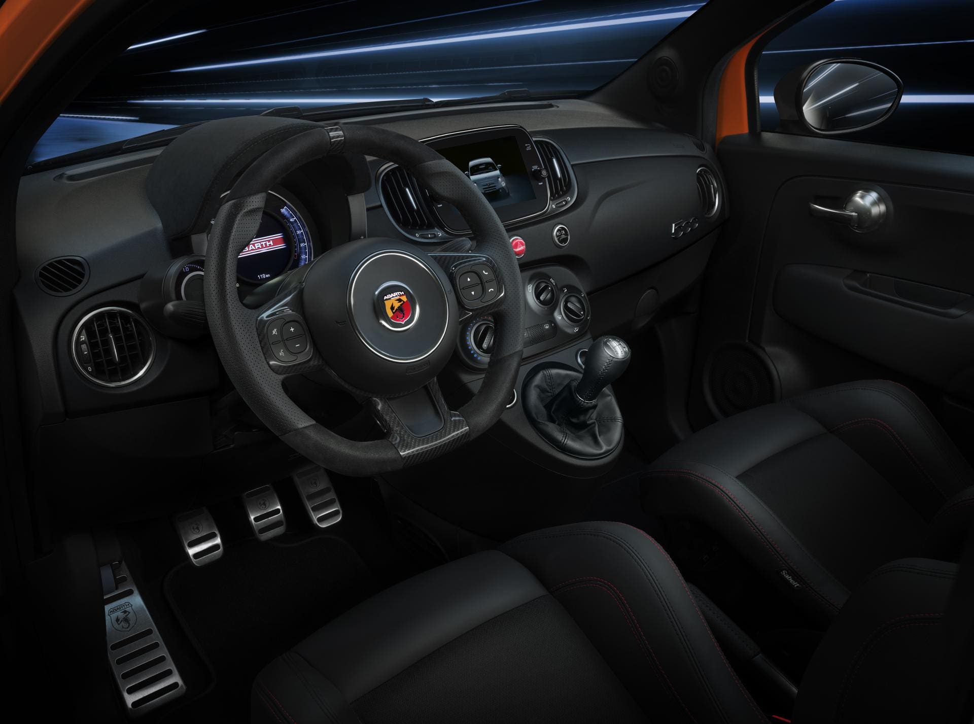 Le nuove Abarth si possono scegliere in due allestimenti abbinabili a due pacchetti