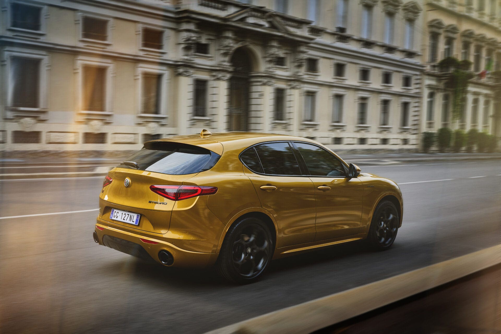 L’esterno dell’Alfa Romeo Stelvio GT Junior, oltre che per l’audace Ocra Lipari, si caratterizza anche per i cerchi in lega leggera da 21 pollici con l’iconico disegno a cinque fori. Sono di serie le palette del cambio automatico in alluminio, solidali al piantone dello sterzo, e disponibili tutti i nuovi sistemi ADAS di Livello 2, i sensori di parcheggio anteriori, il wireless charger e il portellone posteriore ad azionamento automatico.