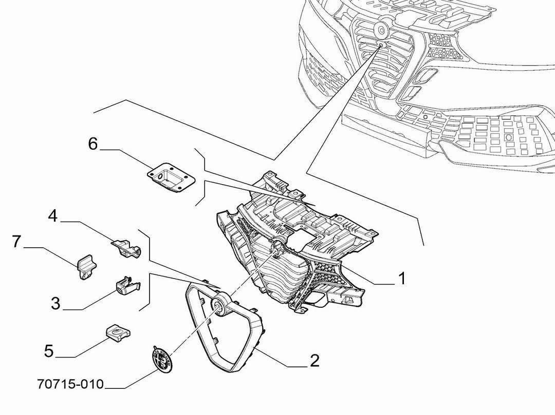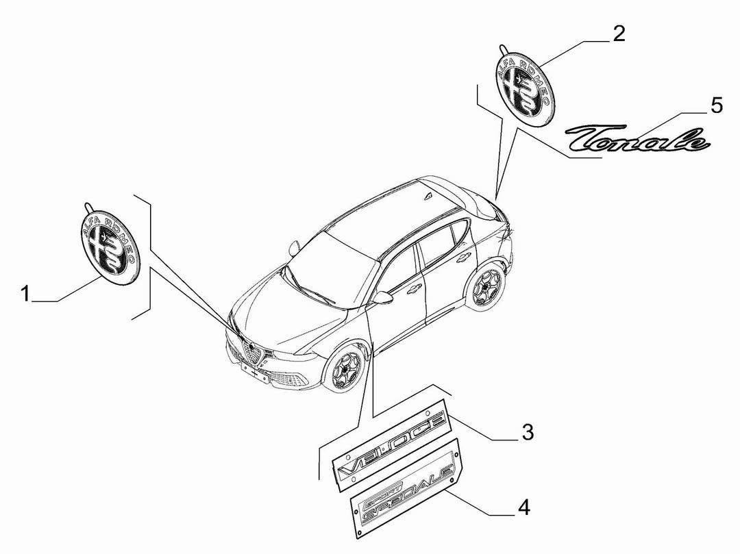 Lo Scudetto, simbolo storico di Alfa Romeo, sarà ridisegnato secondo uno stile derivato dalla 33 Stradale e presenterà listelli orizzontali racchiusi in una cornice triangolare smussata nella parte inferiore, mantenendo il logo circolare in alto. Nessuna rivoluzione, invece, per la parte posteriore, che conserverà logo, scritta e impostazione generale del modello attuale, con solo qualche ritocco al paraurti inferiore.
