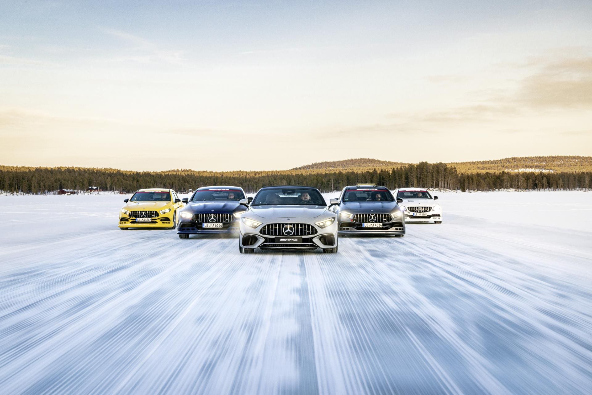 La distesa quasi sconfinata del lago trasmette un’inconfondibile sensazione di libertà. L’obiettivo dei test è quello di padroneggiare in sicurezza una vettura a marchio AMG Performance, o comunque una sportiva, anche in situazioni limite migliorando le proprie capacità di guida. Inoltre, l’attenzione è ovviamente rivolta al piacere di guida su neve e ghiaccio nelle imponenti terre selvagge della Lapponia svedese. La flotta di veicoli offre molta varietà e quindi ulteriori emozioni per i partecipanti.