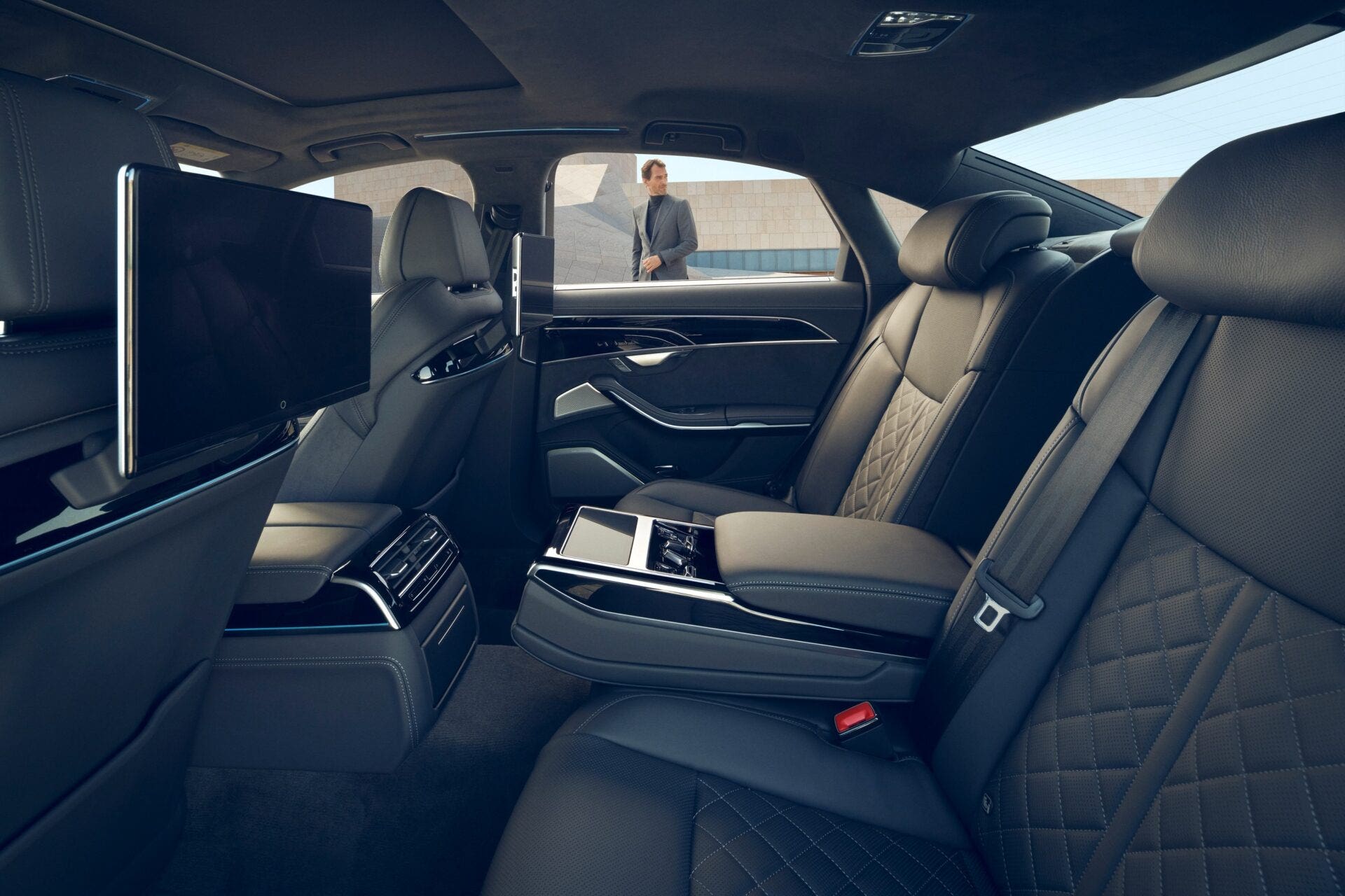 Il sistema è gestito da una trasmissione tiptronic ad 8 rapporti con convertitore di coppia ed è presente anche la trazione integrale. Complessivamente, il sistema ibrido della nuova Audi A8 TFSI e garantisce una potenza massima di 462 CV con 700 Nm di coppia motrice. Grazie alla batteria da 17.9 kWh integrata, è possibile viaggiare in modalità a zero emissioni con un‘autonomia di 49 chilometri nel ciclo WLTP.