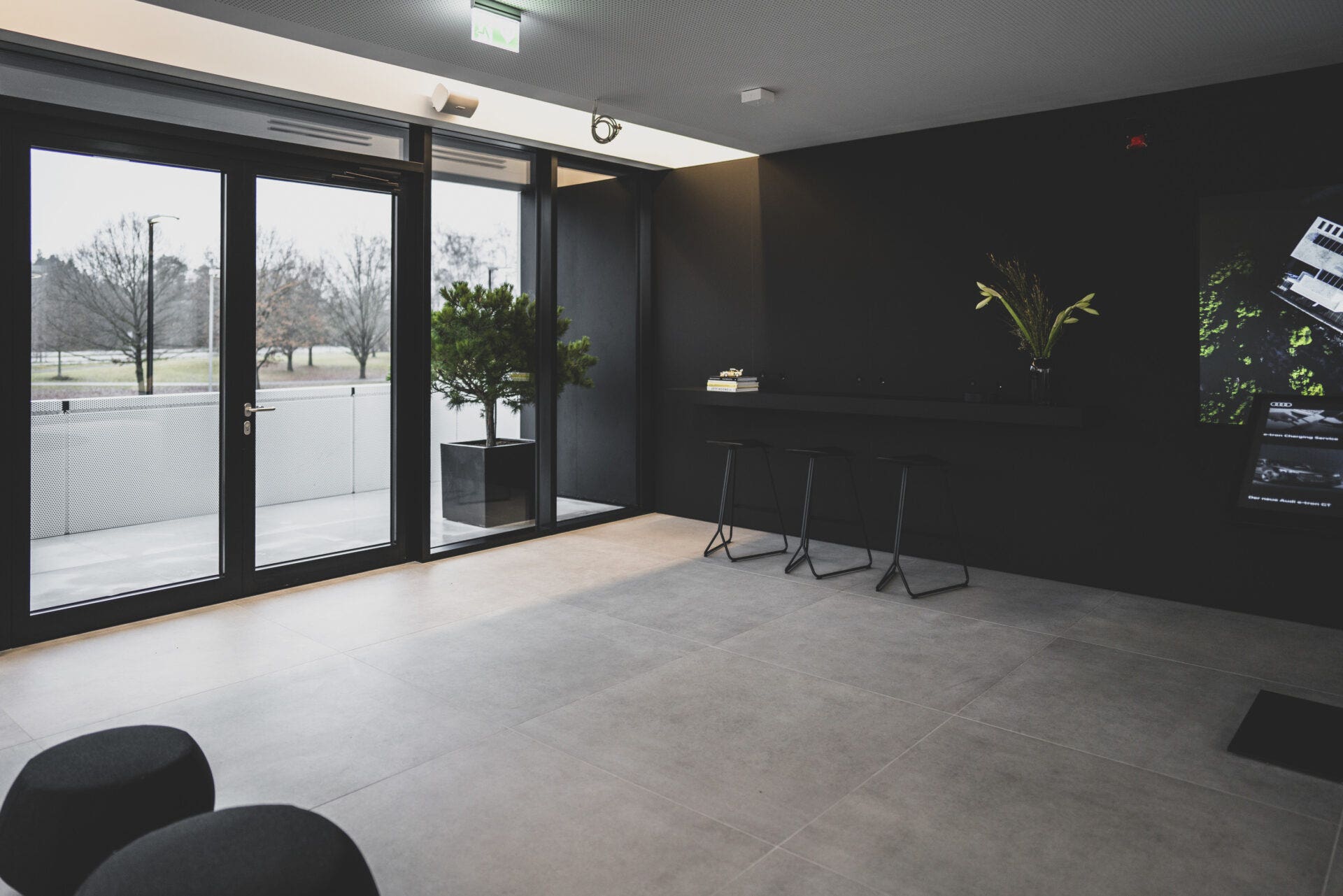 Il personale di servizio si prende cura dei clienti nella lounge priva di barriere architettoniche di circa 200 metri quadrati che comprende anche un patio di 40 metri quadrati: il benessere degli utenti è al centro dell’attenzione. Lì possono lavorare e rilassarsi. Tramite uno schermo da 98 pollici i modelli Audi possono essere configurati o possono essere recuperate informazioni sulla funzionalità dell’Audi Charging Hub o sul livello di carica attuale di un’auto. I sei punti di ricarica e la lounge sono disponibili 24 ore su 24.