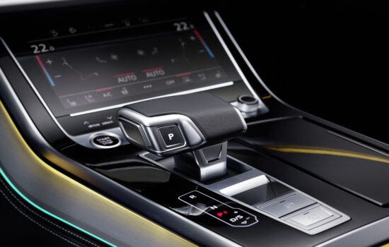 Sopra i 70 km/h entra in funzione la tecnologia laser, così da incrementare, in maniera progressiva, la superficie coperta. Il medesimo meccanismo vale per i fanali dalle luci digitali OLED, le cui quattro forme hanno parecchio di che spartire con il raggio anteriore. Alla pari delle sorelle A8 e Q5, in caso di veicolo arrivato entro due metri dal mezzo fermo l’indicatore di prossimità attiva il fascione del “lato B”. Tra i cerchi ordinabili, l’allestimento ne implementa cinque, che da una dimensione minima di 20 pollici sale fino a quota 23.