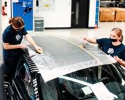 Il processo prevede che il primo componente venga mascherato con una lamina speciale, seguito da un supporto in vetro che viene applicato sul componente utilizzando un metodo a getto d’aspirazione, creando un aspetto distintivo e uniforme.