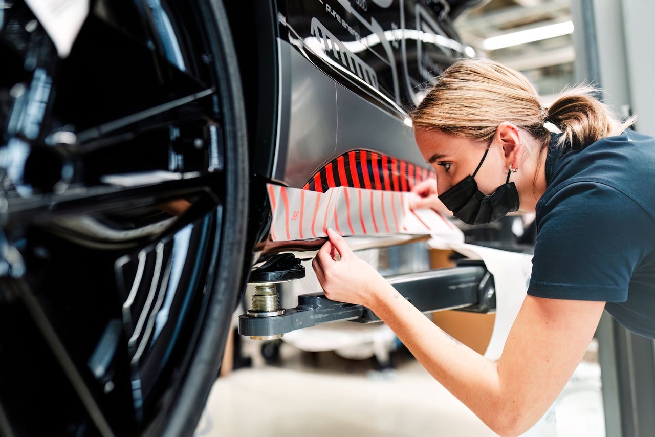 La RS e-tron GT Project_513/2 è la prima Audi a offrire dalla fabbrica un esterno rivestito con grafica mimetica. I camuffamenti sono spesso utilizzati dalla casa dei quattro anelli per i test iniziali e sono progettati per creare confusione per gli spettatori che potrebbero cercare di catturare l’ultimo scorcio del design e della tecnologia dell’esterno prima della presentazione ufficiale.