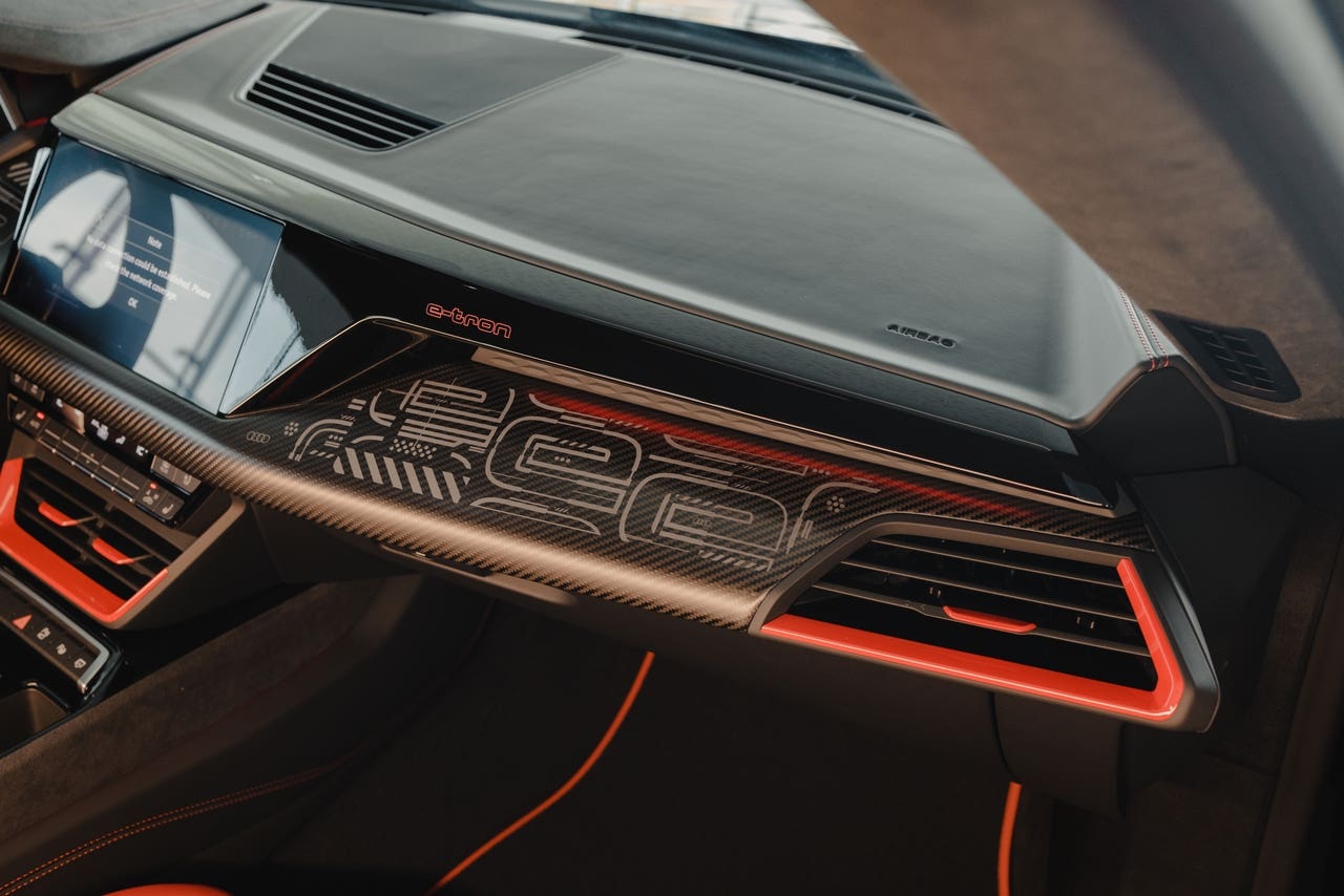 Per la prima volta su un’Audi, la pelle del bracciolo centrale è goffrata con il nome project_513/2. Inoltre, l’Audi RS e-tron GT Project_513/2 introduce un innovativo sfondo e-tron sul display touch da 10.1 pollici del sistema di infotainment MMI, che include anche l’esclusivo logo Project_513/2 nell’angolo inferiore.