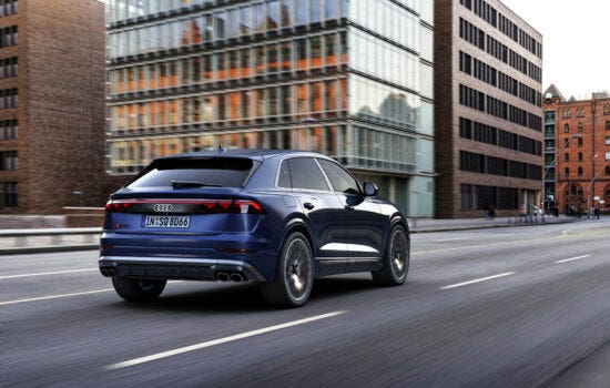 La forte personalità viene altresì enfatizzata dalla griglia Singleframe ottagonale, con il bordo verniciato in nero lucido e una struttura interna a nido d’ape. Meno appariscenti, ma ugualmente interessanti i dettagli decorativi a contrasto sulle minigonne laterali, sulle modanature delle porte e sul diffusore posteriore tra le due coppie di terminali di scarico. Alla pari della Q8, la tavolozza cromatica si arricchisce di tre tonalità inedite: Sakhir Gold, Ascari Blue e Chili Red.