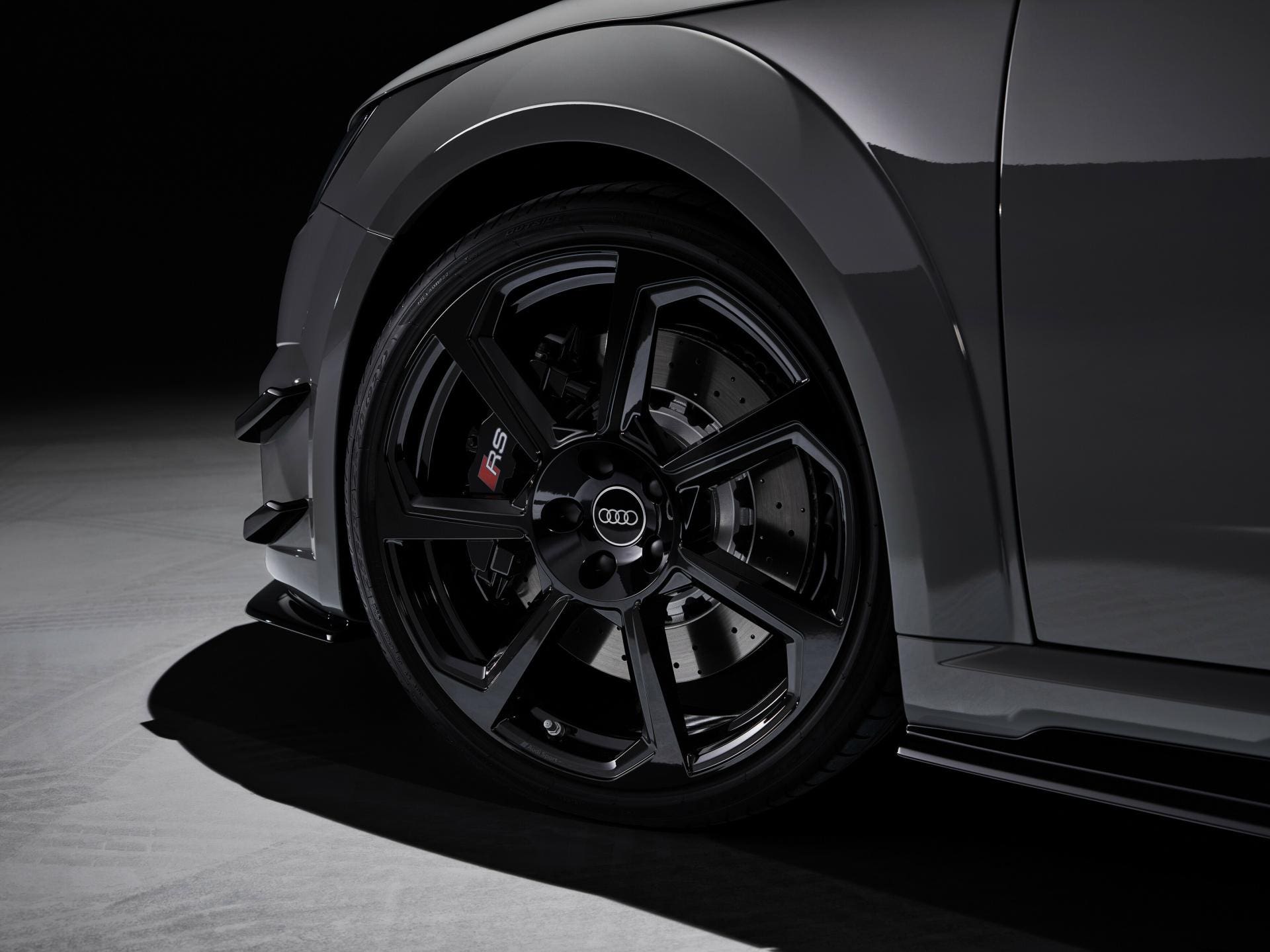 Anche l’Audi TT RS Coupé Iconic Edition ottiene una importante cura aerodinamica dall’Aerokit, sviluppato in galleria del vento. Ispirato agli sport motoristici, il paraurti anteriore presenta alette laterali, uno splitter e deviatori di flusso nelle prese d’aria laterali. Al posteriore, l’ala fissa in carbonio, con alette laterali, assicura una finitura sportiva e, come parte del concetto aerodinamico, supporta sia le prestazioni che l’efficienza.