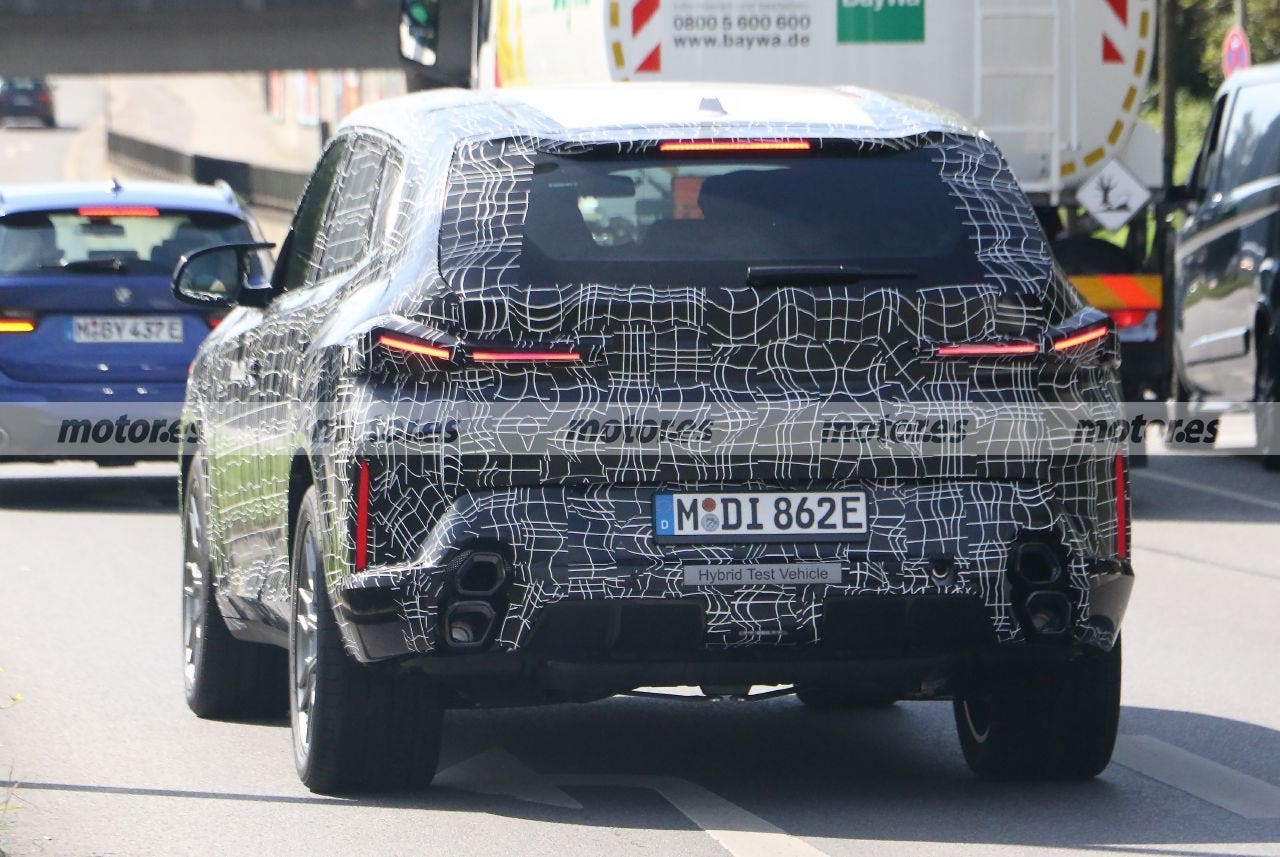 Queste nuove foto spia svelano nuovi dettagli che, fino ad ora, erano rimasti nascosti. Le sue forme e le sue linee appaiono ora più definite, come la forma della doppia griglia a Doppio Rene con le sue nuove barre orizzontali e che rivela parte delle prese d’aria verticali all’estremità del paraurti, mentre i gruppi ottici sdoppiati rimangono parzialmente nascosti per garantire un aspetto più dinamico che la nuova BMW XM condivide con la BMW X7 e la nuova generazione della Serie 7.