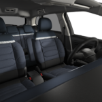 Il rivestimento principale Hello Chinor dei sedili Advanced Comfort è un tessuto sportivo in tonalità grigio/blu, spesso presente nell’abbigliamento tecnico o nelle scarpe da ginnastica. La parte superiore degli schienali e la parte anteriore dei sedili sono costituiti da un tessuto tecnico effetto pelle in Sapphire Blue, impreziosito da una nuova impuntura in Blu La Rochelle.