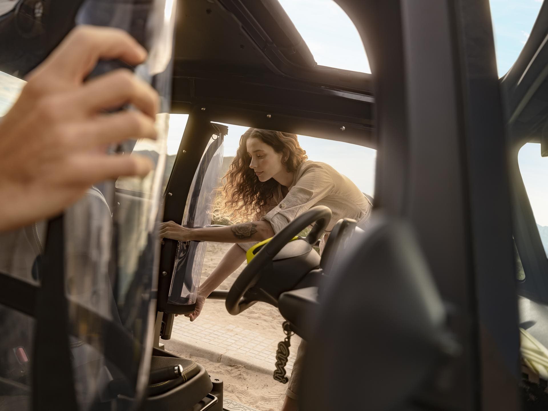 La minicar elettrica conserva il powertrain di serie da 6 kW, quello che le consente di raggiungere una velocità massima di 45 km/h e un’autonomia di 75 chilometri percorribili con una ricarica di 3 ore da una presa domestica: il cavo di ricarica è integrato nella battuta della portiera del passeggero. La Citroën My Ami Buggy II è pensata per offrire una mobilità sostenibile e divertente a tutti, dai 14 anni in su.