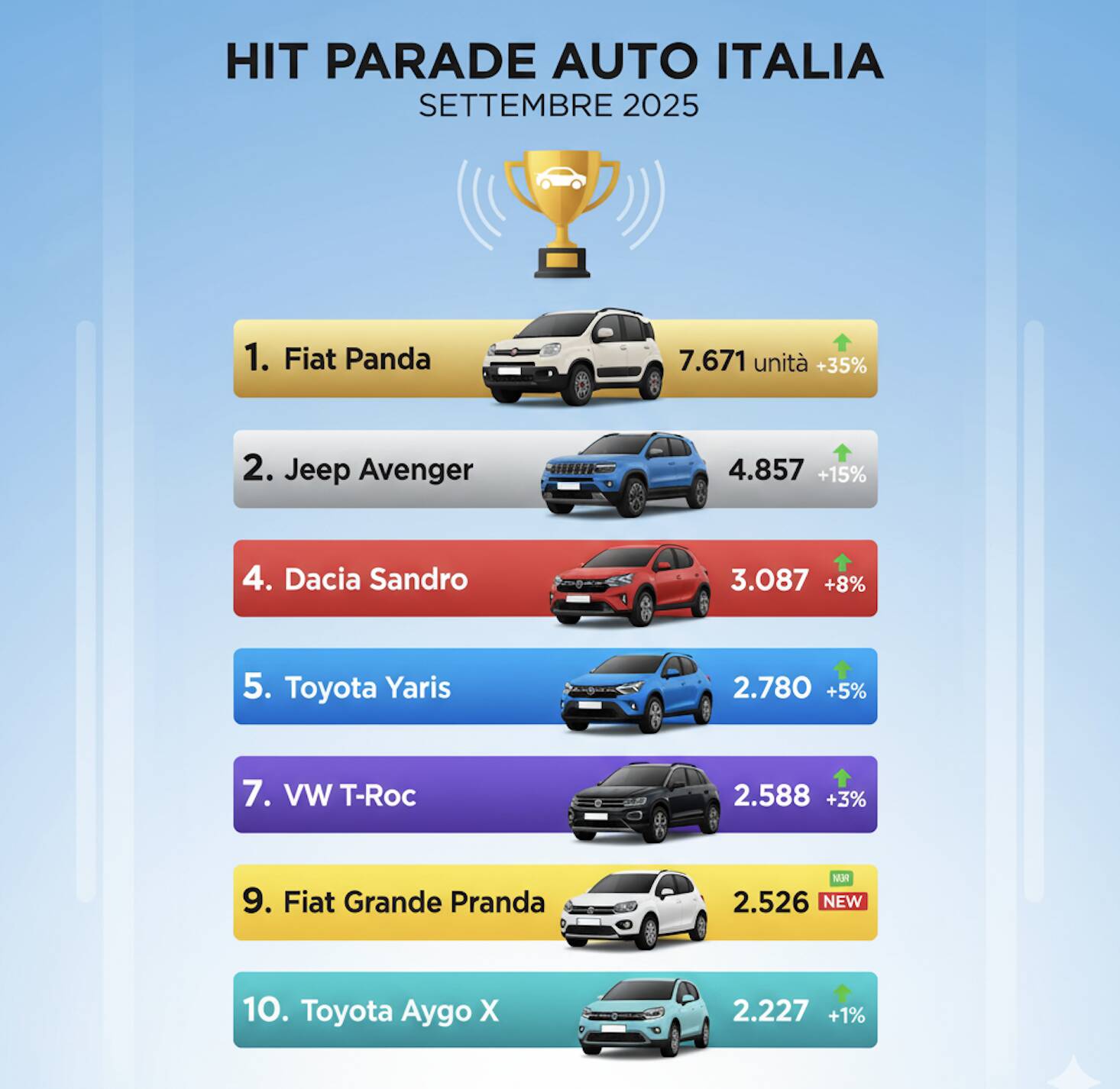 Classifica completa Gruppi auto Italia a settembre 2025
