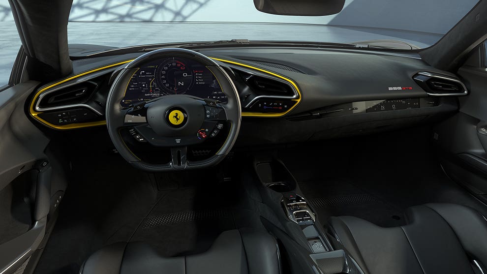 I comandi per il controllo della velocità nella Ferrari 296 GTB che nella F8 apparivano separati dal volante (con buon criterio, visto che una Ferrari deve essere appassionata di guida) ora sono stati incorporati in detto volante, nel quale vediamo anche alcuni comandi touch che in precedenza non esistevano alla Ferrari. E il passeggero continua a contare sul display aggiuntivo per controllare le prestazioni del propulsore.
