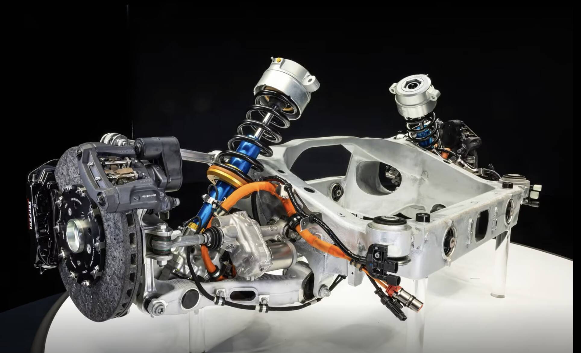 L’assale anteriore, che ha una potenza totale di 210 kW, può essere disconnesso a qualsiasi velocità (fino a quella massima), trasformando la vettura in una trazione posteriore quando le condizioni di guida non richiedono la presenza delle quattro ruote motrici. In massima spinta è capace di erogare oltre 3500 Nm di coppia in uscita verso le ruote. L’assale anteriore registra un valore di densità di potenza di 3.23 kW/kg, con il 93% di efficienza alla potenza massima. Il posteriore raggiunge i 620 kW, un totale di 4,8 kW/kg con il 93% di efficienza alla potenza massima. La coppia massima totale erogabile a terra raggiunge gli 8000 Nm in condizioni di Performance Launch.