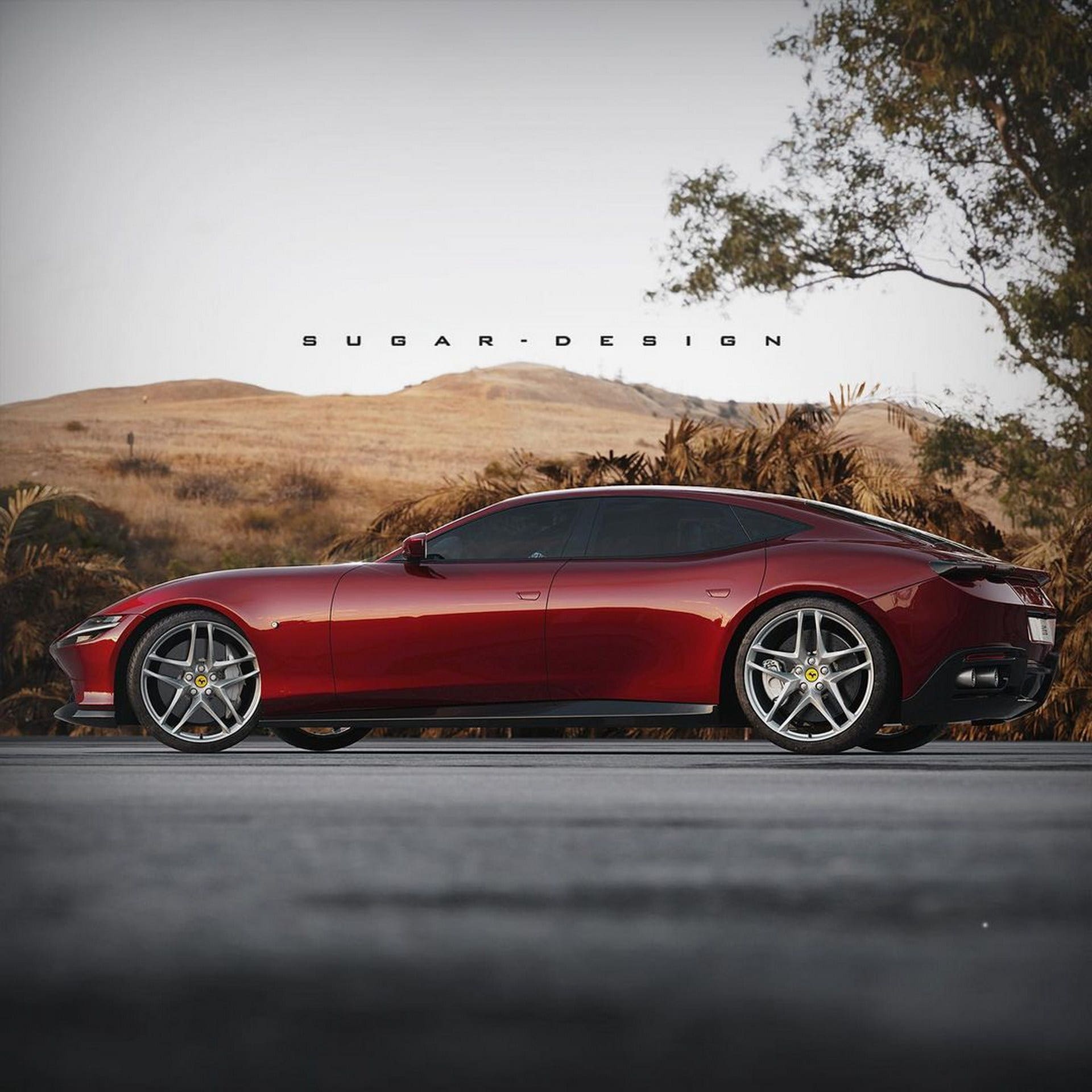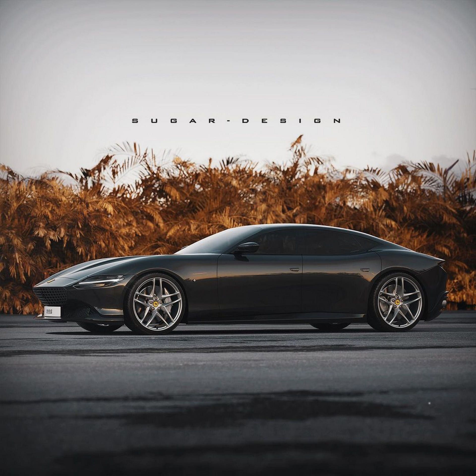 Sugar Chow è noto per aver convertito coupé e auto sportive in shooting brake o berline in station wagon, ma questa volta ha optato per una ricetta diversa trasformando appunto una Gran Turismo in una berlina sportiva dal fascino indiscusso. La Ferrari Roma è perciò al centro di questo concept immaginario che esiste solo nel mondo digitale. Il modello condivide il design della parte anteriore e posteriore con la GT a due porte del Cavallino Rampante, ma presenta un passo significativamente più lungo per adattarsi alla presenza delle due porte in più e quindi offrire un adeguato spazio per le gambe dei passeggeri posteriori. Il profilo sembra sorprendentemente ben proporzionato, poiché il designer ha messo a punto un ottimo lavoro integrando il volume extra, mantenendo la superficie e allungando dove era necessario.