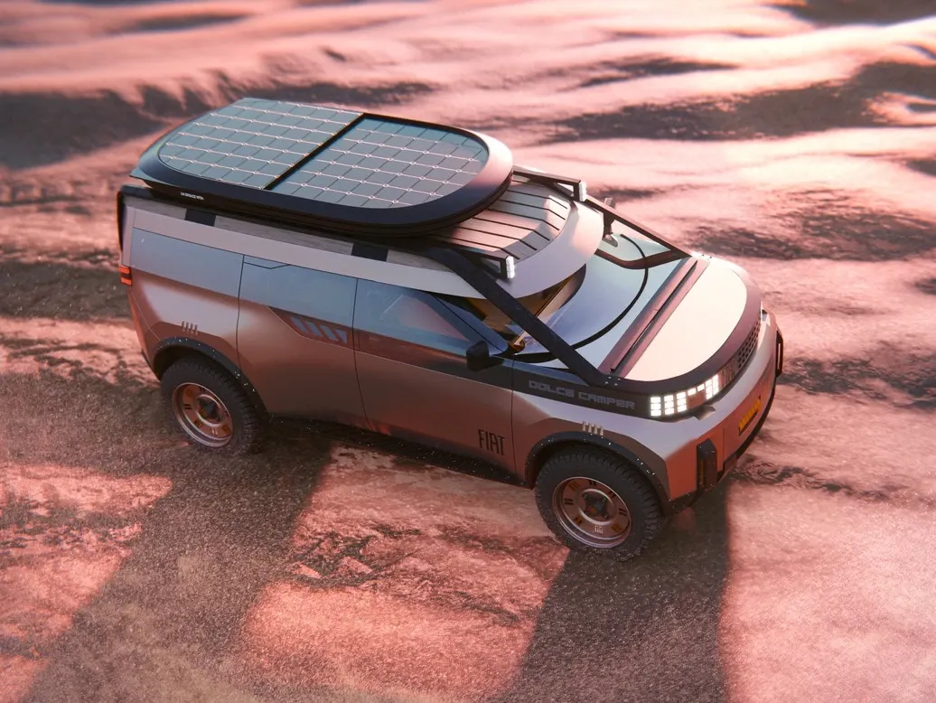 In vista del suo 50esimo anniversario sul mercato brasiliano nel 2026, Fiat ha svelato al Salone dell’Automobile di San Paolo 2025 un concept che sembra uscito da un cartoon ma a tema campeggio estremo. Si tratta della Dolce Camper. Ispirata stilisticamente alla Grande Panda, questa vettura è un eccentrico incrocio tra monovolume, SUV e fuoristrada. D’altronde, la famiglia Grande Panda è inevitabilmente destinata ad allargarsi in altre iterazioni allargate.