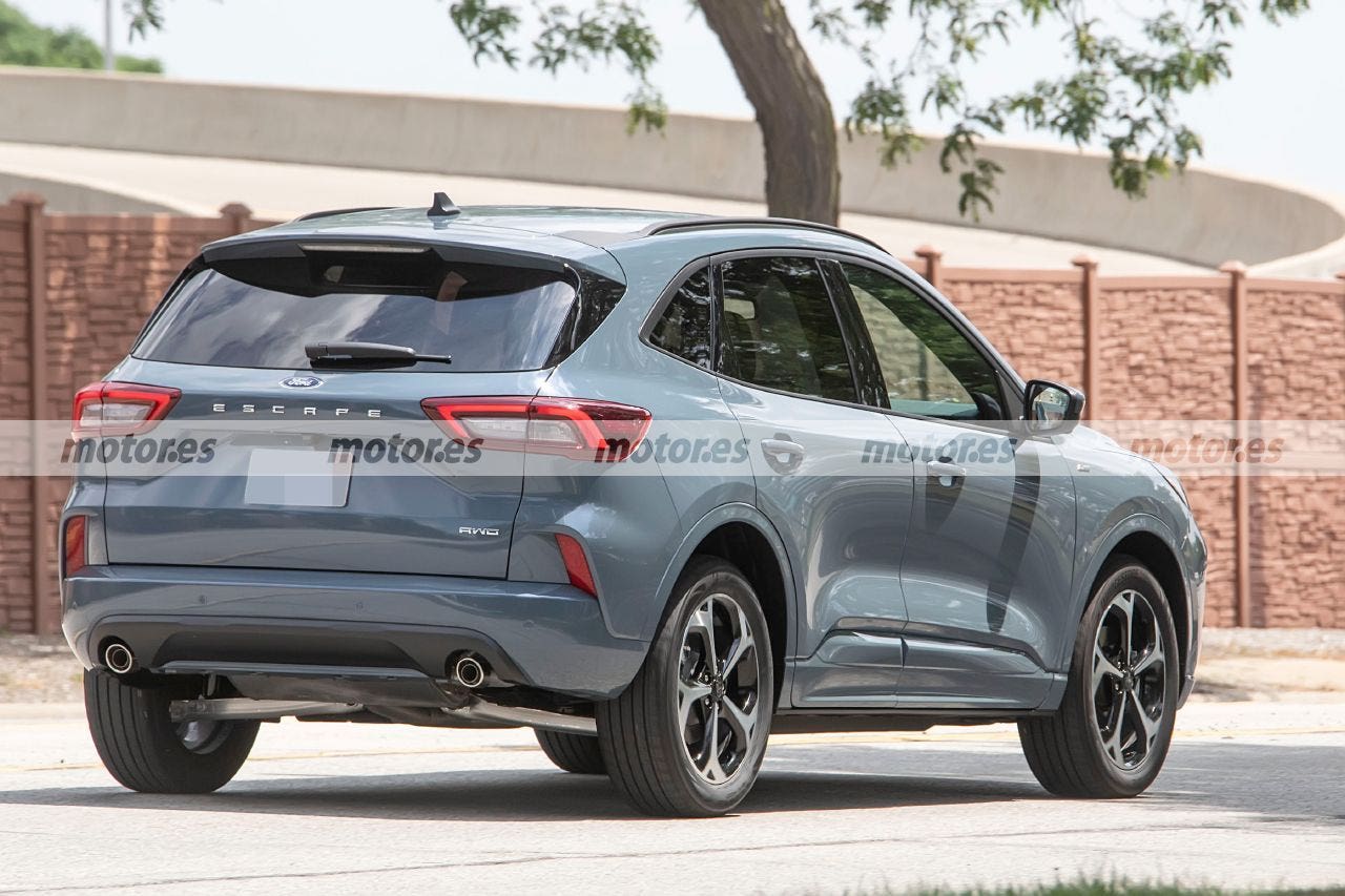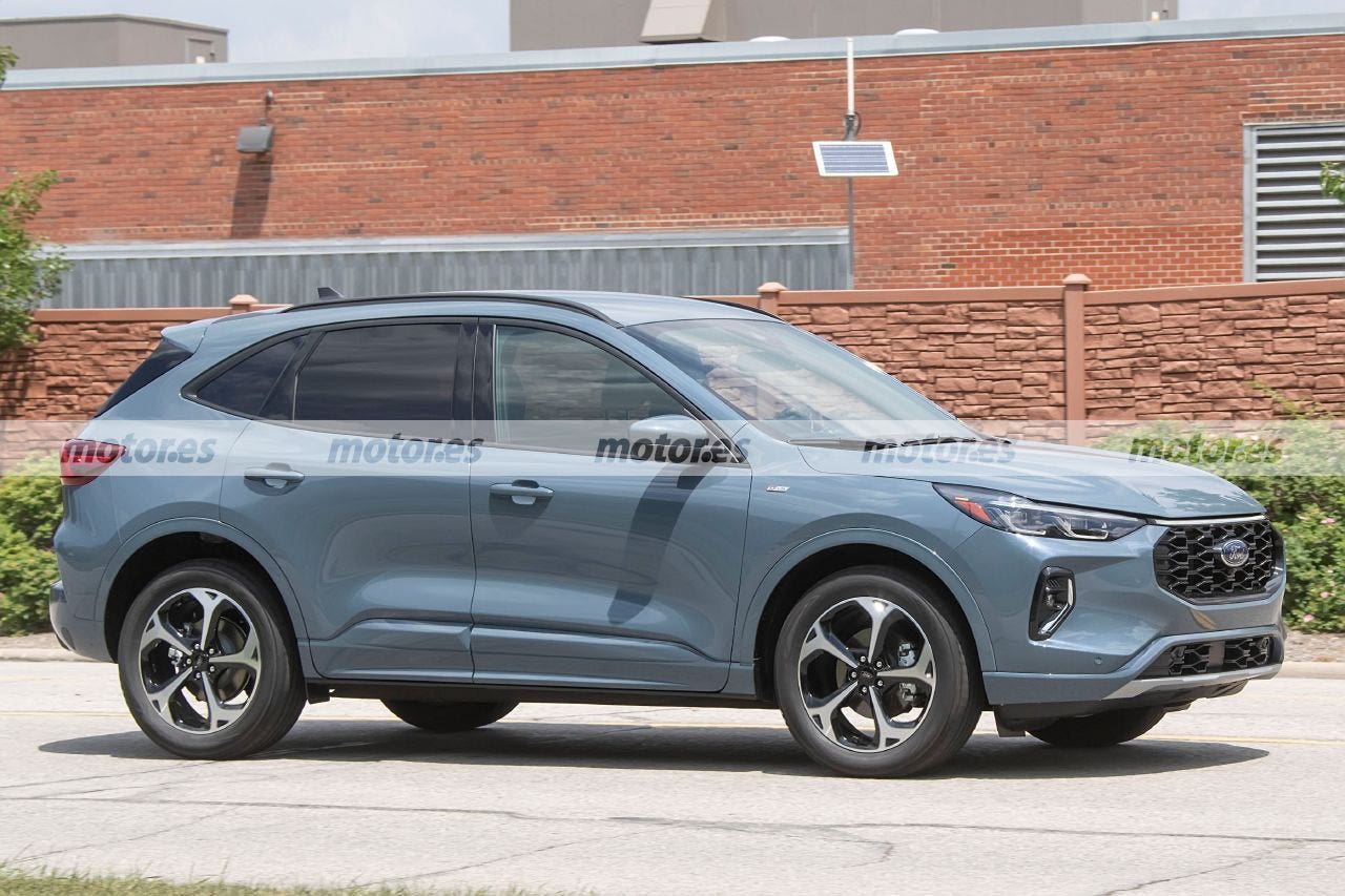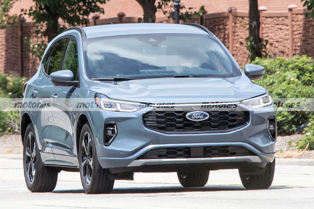 La Ford Kuga è apparsa senza alcun elemento coprente che ne rivestiva la carrozzeria, rivelando quindi uno stile ora più moderno che indosserà sulle strade europee a partire da inizio 2023. Un cambiamento particolarmente sostanziale, soprattutto sul frontale, che ora ha nuovi fari più sottili che mantengono un layout già noto. Anche la griglia del radiatore opta per una nuova forma, ora un ottagono anziché un esagono perdendo volume, mentre il paraurti semplifica le linee e le dimensioni delle prese d’aria.