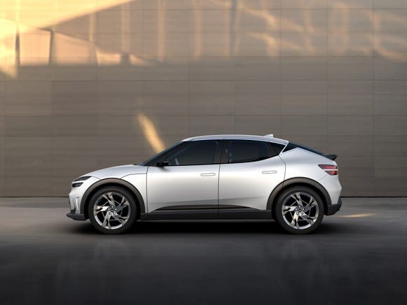 Il design recentemente svelato del GV60 incorpora alcuni elementi del design del marchio Genesis, così come i suoi fratelli E-GMP. I fari e le luci posteriori in due parti sono caratteristiche tipiche di Genesis. Le maniglie delle porte aerodinamiche incassate sono utilizzate anche da Ioniq 5 ed EV6, e la vista laterale con il lunotto inclinato e la linea di spalla rialzata è probabilmente ispirata a quest’ultima. Tuttavia, il design dei cerchi è unico.