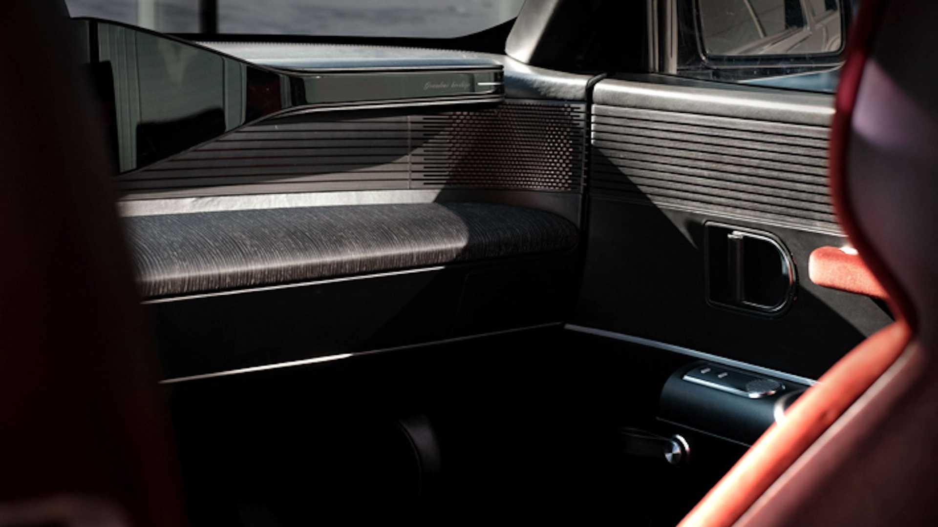 Il bracciolo tra i sedili anteriori nasconde un vano portaoggetti segreto, con un selettore del cambio in metallo che spunta dalla consolle centrale, e l’abitacolo è rifinito con una combinazione di legno e materiali lucidi. Anche l’abitacolo posteriore ha ricevuto una completa riprogettazione. Il rivestimento in velluto bordeaux è completato da schienali in pelle nappa e illuminazione speciale, incluso quello che Hyundai chiama uno “specchio infinito” circondato da LED.
