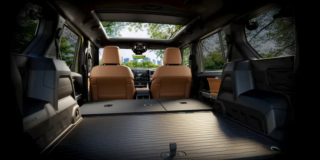 La Recon è l’unico SUV elettrico della Casa americana a potersi fregiare del badge “Trail Rated” (ovvero che ha passato test estremi su fondi molto irregolari), grazie ad angoli caratteristici notevoli e protezioni sottoscocca in acciaio per la batteria da 100 kWh, che promette un’autonomia di circa 450 chilometri. Il sistema di gestione della trazione integrale Selec-Terrain offre quattro modalità specifiche, oltre al Selec-Speed Control per le discese. L’efficienza su strada, inoltre, è gestita dalla disconnessione automatica delle ruote sull’asse anteriore.