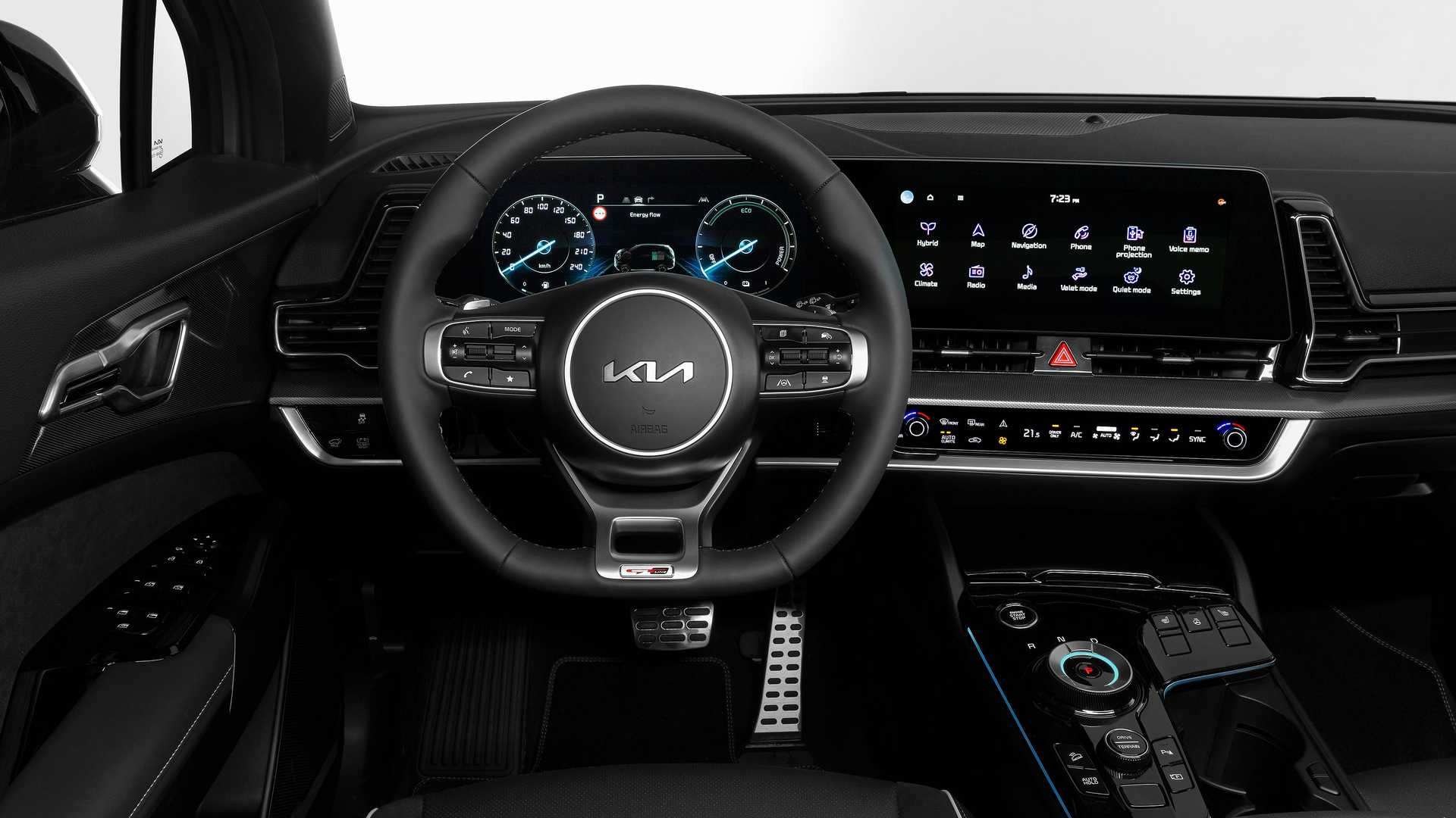 La dotazione di serie del nuovo SUV di casa Kia è molto ricca in rapporto al segmento di mercato. All’interno dell’abitacolo troviamo due display da 12.3 pollici, uno per il sistema multimediale e uno la strumentazione di bordo. Il sistema è connesso ad Internet e potrà essere aggiornato tramite aggiornamenti OTA. Tra i sistemi di sicurezza e assistenza alla guida disponibili troviamo lo Smart Cruise Control ed il sistema di rilevazione dell’angolo cieco.