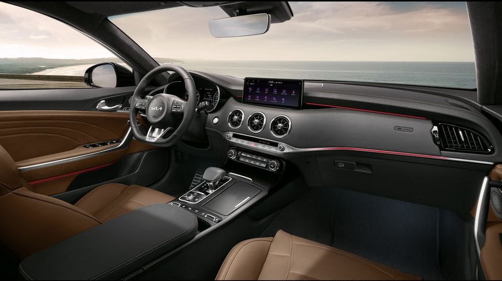 All’interno, la KIA Stinger Tribute Edition presenta un’atmosfera più lussuosa con i sedili sportivi anteriori rivestiti in pelle Terracotta Brown così come i pannelli porta, in contrasto con la speciale finitura sul tunnel di trasmissione e le parti superiori delle portiere in simil carbonio. Il volante, con la parte inferiore della corona appiattita, presenta un profilo cromato nella parte inferiore, lo stesso trattamento applicato alle maniglie delle portiere. Le prese d’aria terminali sono rifinite in nero lucido e i poggiatesta sfoggiano l’emblema di una vespa.