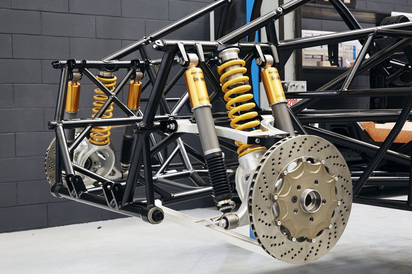 La Kimera EVO37 mantiene il contatto con l’asfalto grazie alle sospensioni forgiate a doppio braccio oscillante e il movimento delle molle è controllato dagli ammortizzatori Ohlins, due per ruota al posteriore: in questo modo le ruote leggono il manto stradale con precisione.