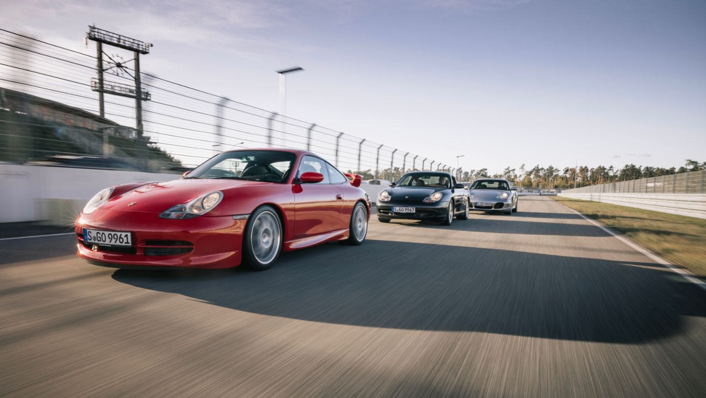 La Porsche 911 GT3, lanciata invece nel maggio del 1999, nasce piuttosto casualmente. A causa del cambiamento dei regolamenti per l’applicazione sui campi di gara, Porsche costruisce una variante da 360 cavalli della 911 come vettura di omologazione per la strada e come modello successivo della 911 Carrera RS. “All’inizio il successo economico e i numeri degli esemplari non furono grandi”, svela Achleitner. “Eppure la 911 GT3 ha segnato l’inizio dell’affermazione del nostro marchio, perché proprio con la Porsche 911 GT3 della generazione 996 abbiamo garantito una chiara differenza tra una 911 adatta all’uso quotidiano e la controparte destinata al motorsport da strada”, ha aggiunto. Nel gennaio del 2001 è quindi il turno della 911 GT2 su base 911 Turbo che adotta un motore boxer da 3,6 litri e 462 cavalli e per la prima volta utilizza freni in ceramica di serie.