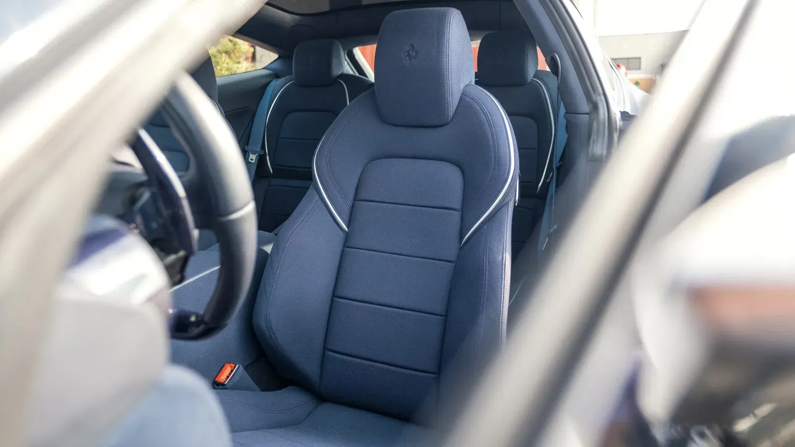 La carrozzeria brilla nello speciale Nuovo Blu, una tonalità di un’eleganza quasi aristocratica. L’abitacolo di questa Ferrari FF però riesce regalare la vera sorpresa. Dimenticate la solita pelle totale, poiché qui troviamo una delle rarità assolute dell’era moderna, ovvero sedili in tessuto blu. Un tocco di classe “vintage” impreziosito dai loghi del Cavallino ricamati sui poggiatesta, piping bianco a contrasto e inserti in fibra di carbonio Blu. È sportiva, è raffinata e, probabilmente, è più accogliente del divano di moltissime case.
