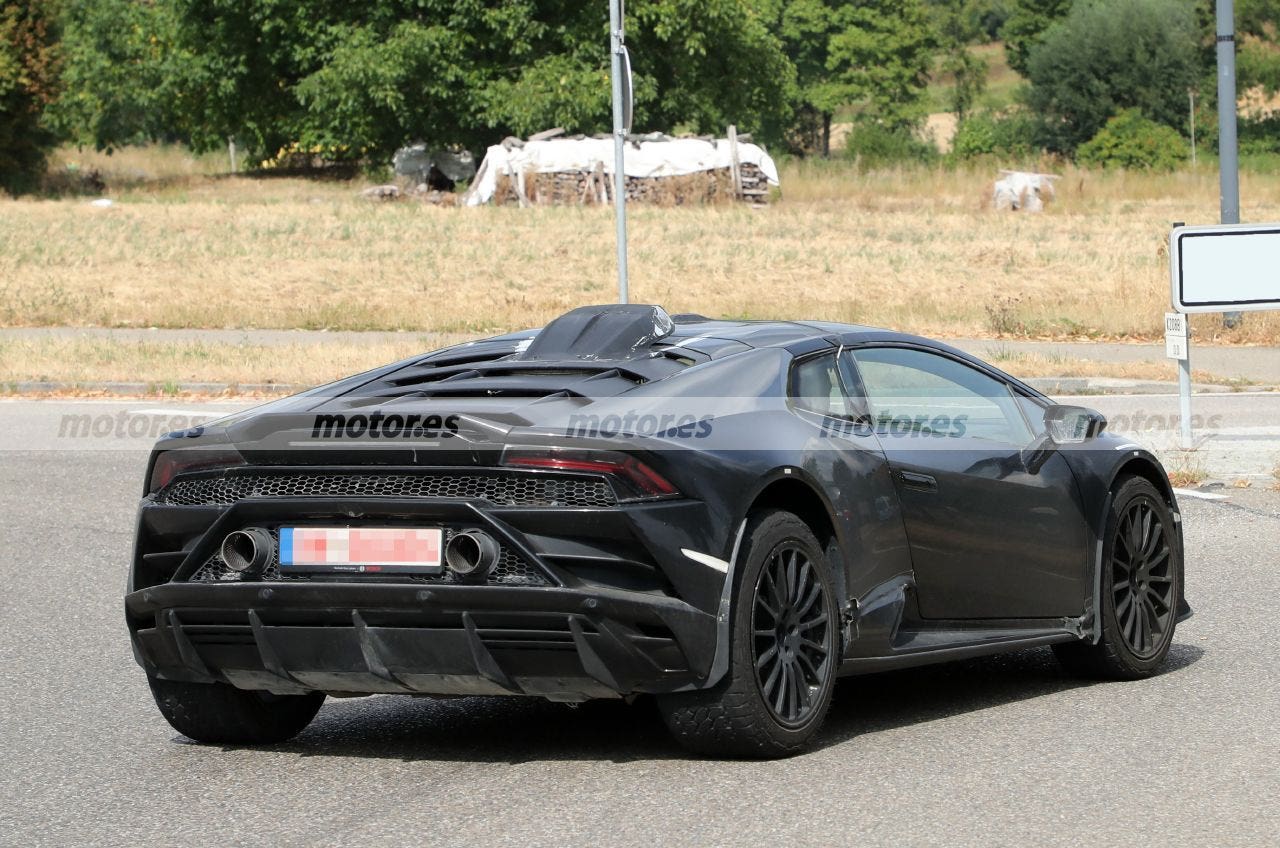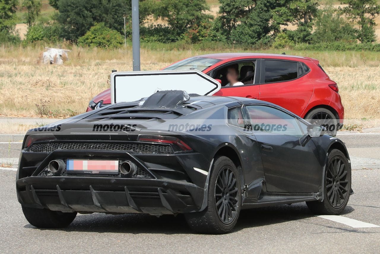 Invece, mantiene la presa d’aria di aspirazione sul tetto ed è possibile anche vedere che l’altezza del corpo vettura, da terra, risulta sicuramente superiore a quella di una Huracan convenzionale. Inoltre rimane anche la copertura che ora protegge il motore posteriore, ma ora collocata in posizione leggermente più alta per garantire il necessario flusso di raffreddamento della meccanica. Anche se questo prototipo sembra più spoglio, dispone ancora di qualche camuffatura, a cominciare da quella che ricopre la presa d’aria situata davanti alle ruote posteriori.