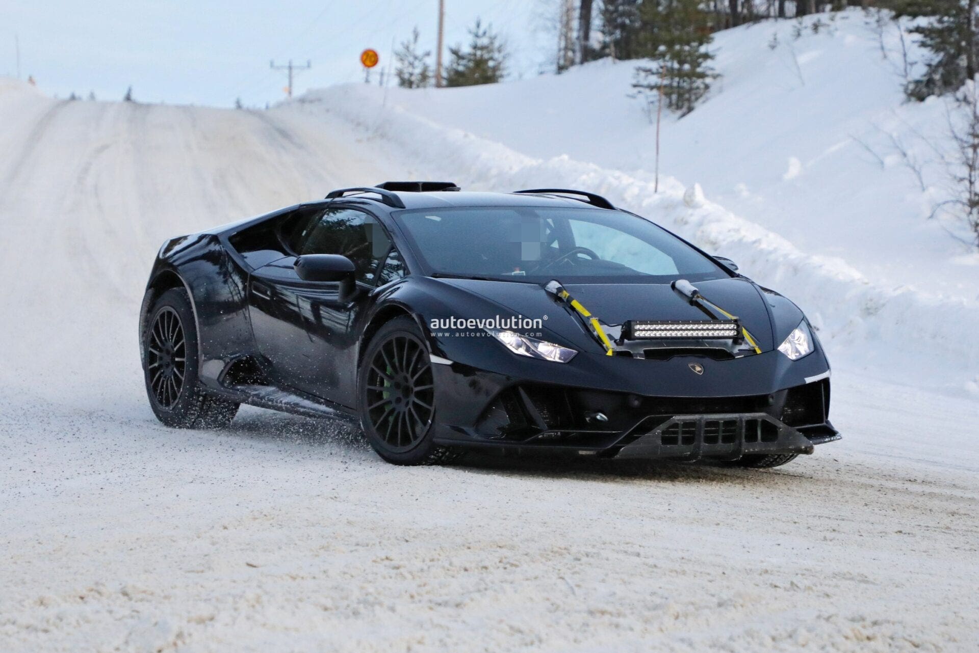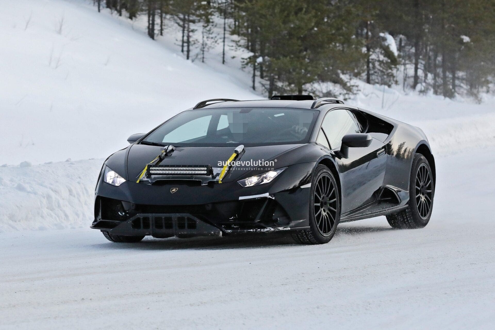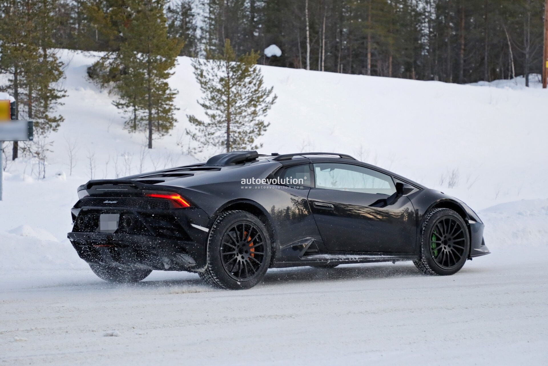 Seguendo il concept unico rivelato a suo tempo, Lamborghini sta attualmente testando un prototipo di pre-produzione in condizioni meteorologiche estreme presso le strade innevate del Nord Europa. La Lamborghini Huracán Sterrato è infatti già prevista per il lancio come edizione speciale del Model Year 2023 della Huracán. La variante Sterrato presenta ovvie modifiche dedicate che la rendono più alta da terra, un paraurti anteriore modificato e dotato di una protezione aggiuntiva contro sassi ed elementi riscontrabili nella guida in off-road, un set di LED ausiliari sul muso, una presa d’aria periscopica sul tetto in accordo con barre longitudinali che rendono la nuovissima variante immediatamente riconoscibile dalle altre versioni della Huracán oggi disponibili.