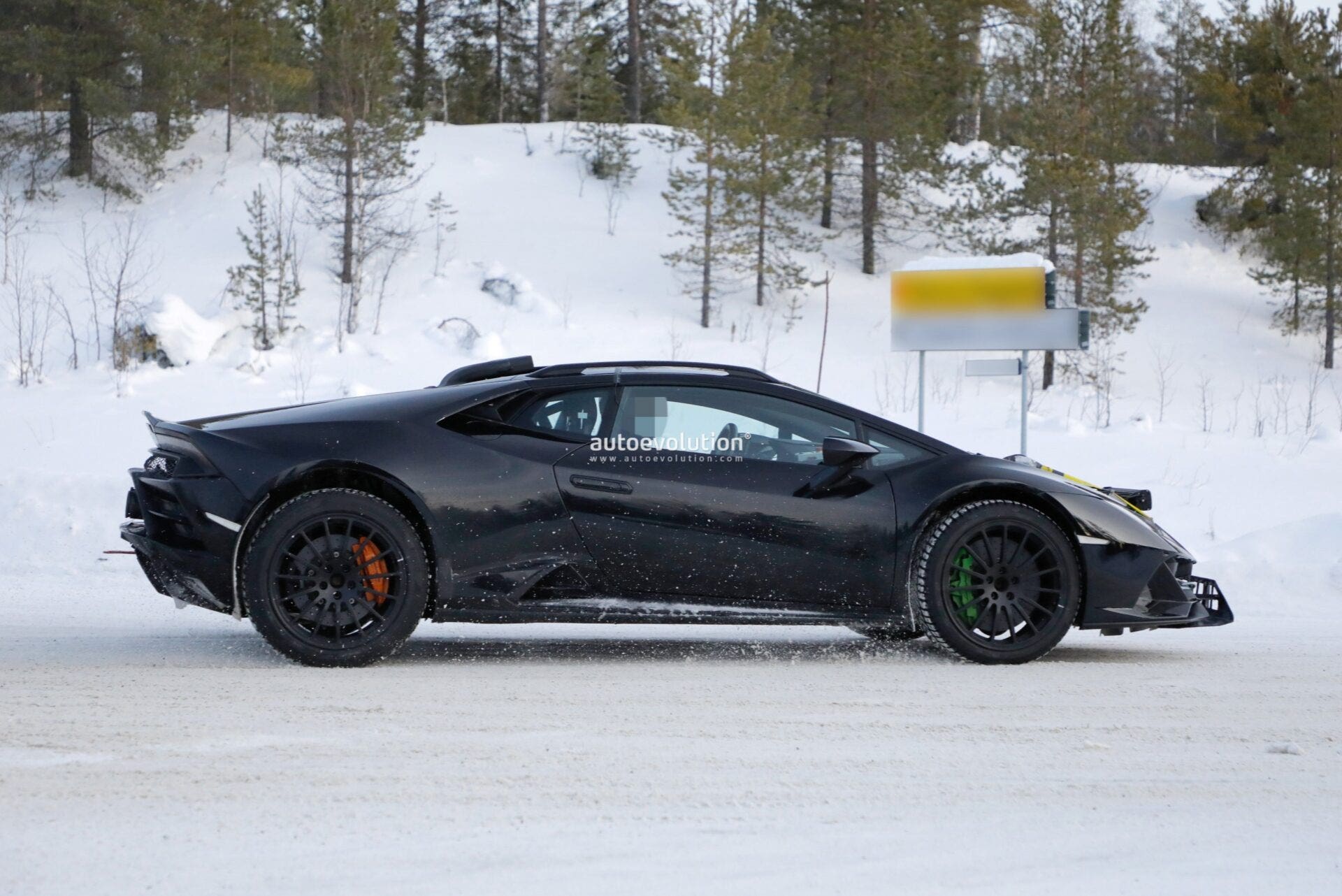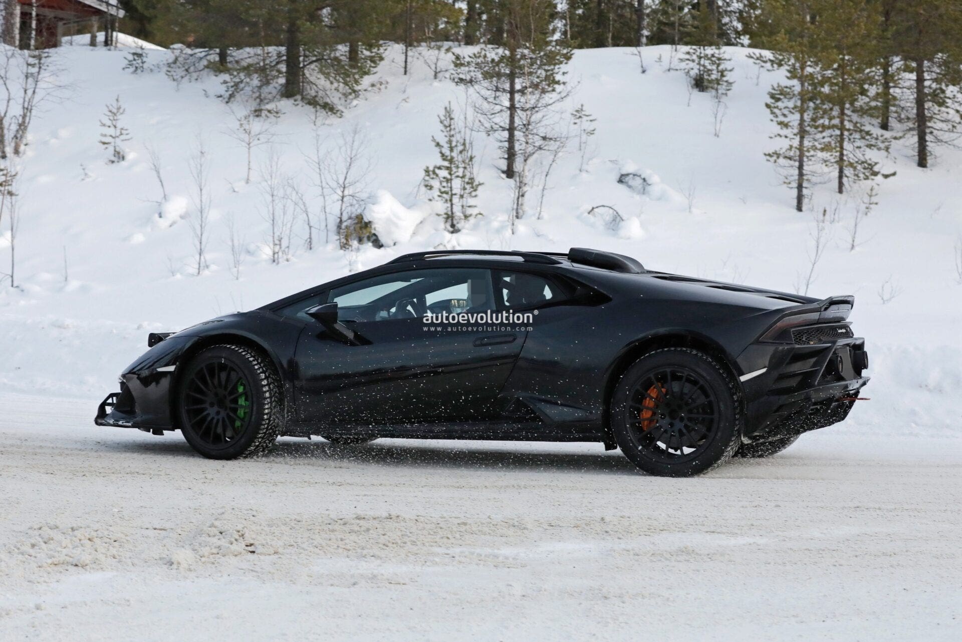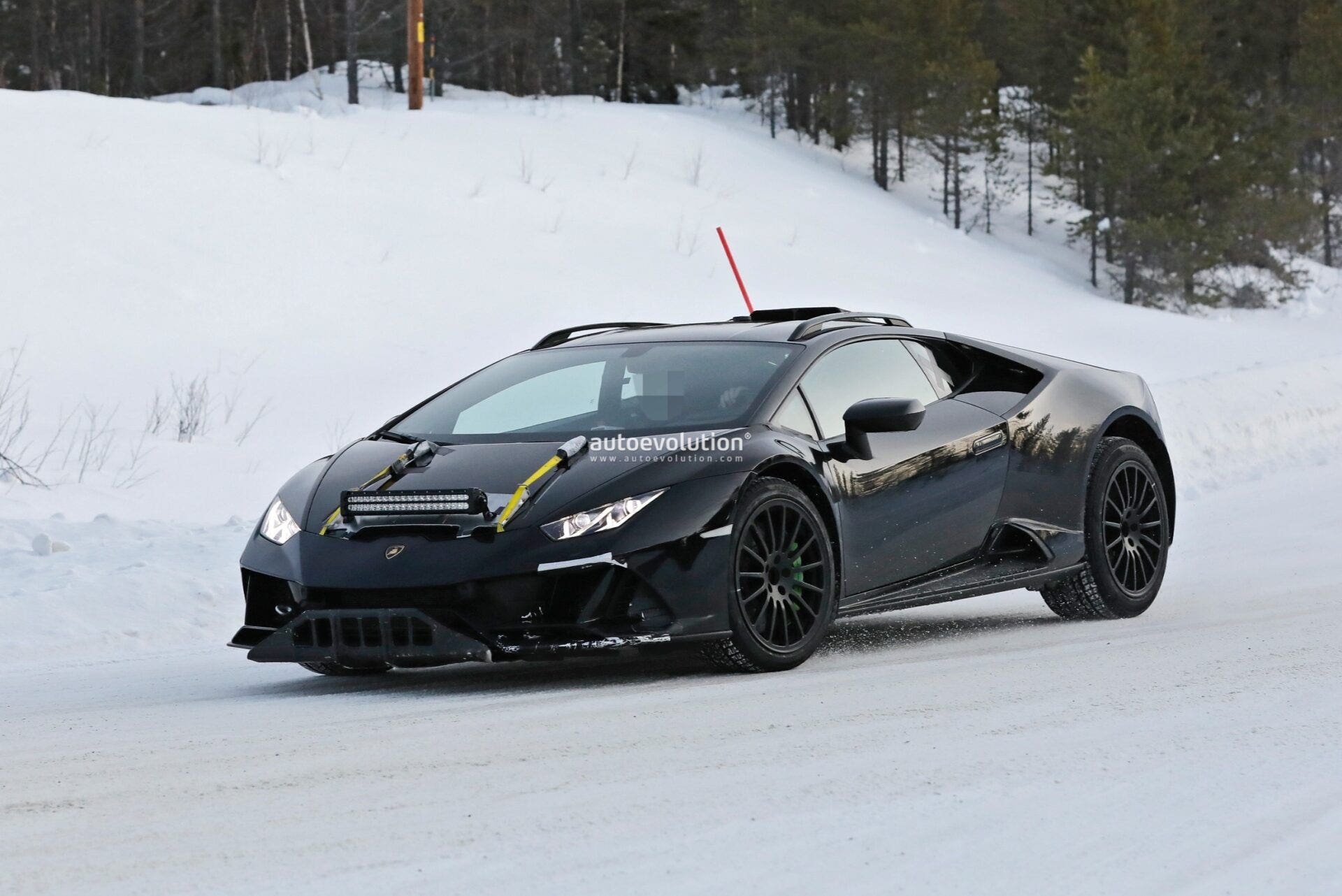 Seguendo il concept unico rivelato a suo tempo, Lamborghini sta attualmente testando un prototipo di pre-produzione in condizioni meteorologiche estreme presso le strade innevate del Nord Europa. La Lamborghini Huracán Sterrato è infatti già prevista per il lancio come edizione speciale del Model Year 2023 della Huracán. La variante Sterrato presenta ovvie modifiche dedicate che la rendono più alta da terra, un paraurti anteriore modificato e dotato di una protezione aggiuntiva contro sassi ed elementi riscontrabili nella guida in off-road, un set di LED ausiliari sul muso, una presa d’aria periscopica sul tetto in accordo con barre longitudinali che rendono la nuovissima variante immediatamente riconoscibile dalle altre versioni della Huracán oggi disponibili.