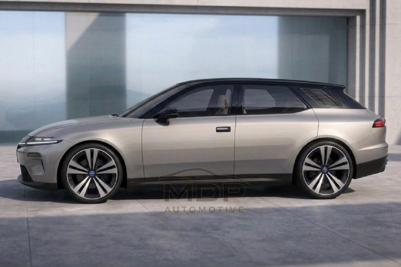 Il frontale si presenta molto basso e affilato, con una firma luminosa orizzontale sottilissima e un cofano lungo che accentua la sensazione di slancio. La fiancata mostra superfici levigate, maniglie integrate e una linea pulita accompagnata da un tetto nero a contrasto, mentre l’inserimento di due porte posteriori aumenta la funzionalità quotidiana senza compromettere la silhouette, che conserva un’impostazione quasi da coupé. La vista posteriore è caratterizzata da gruppi ottici sottili, una coda larga e un disegno essenziale che conferiscono un aspetto solido, arricchito da grandi cerchi aerodinamici e da alcuni dettagli tecnici sul montante posteriore.