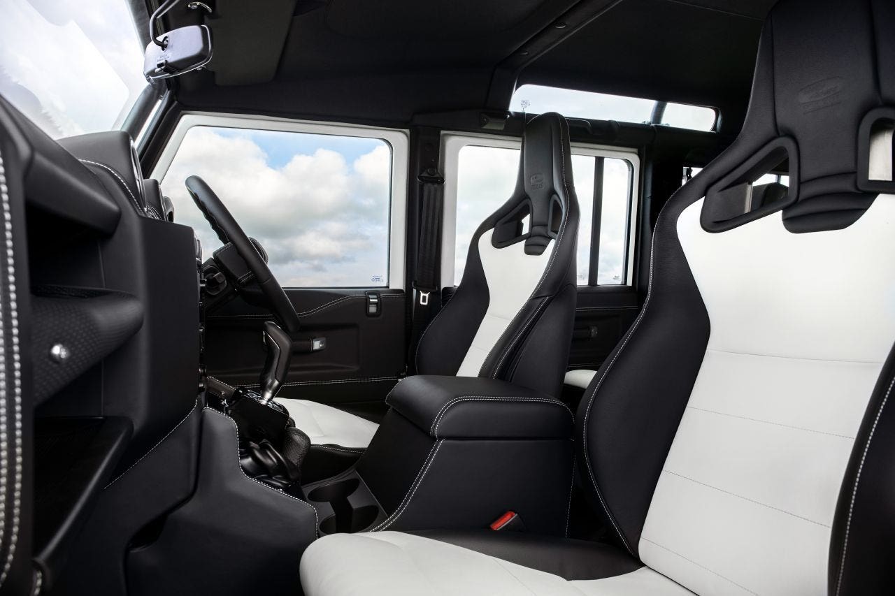 Dentro niente a che vedere con il modello classico. Il Land Rover Defender Works V8 Trophy II è dotato di sedili sportivi Recaro imbottiti in bianco e nero con cuciture a contrasto e un potente sistema di navigazione per non perderti ovunque tu sia. L’edizione speciale monta il potente motore a benzina V8 da 5.0 litri di cilindrata e una potenza massima di 405 cavalli, che si sposta su tutte le ruote tramite il cambio automatico a 8 rapporti. Land Rover produrrà solamente 25 unità per ciò che riguarda questa Defender Works V8 Trophy II, con prezzi a partire da 225.000 sterline per il Defender 90: al cambio circa 270mila euro.