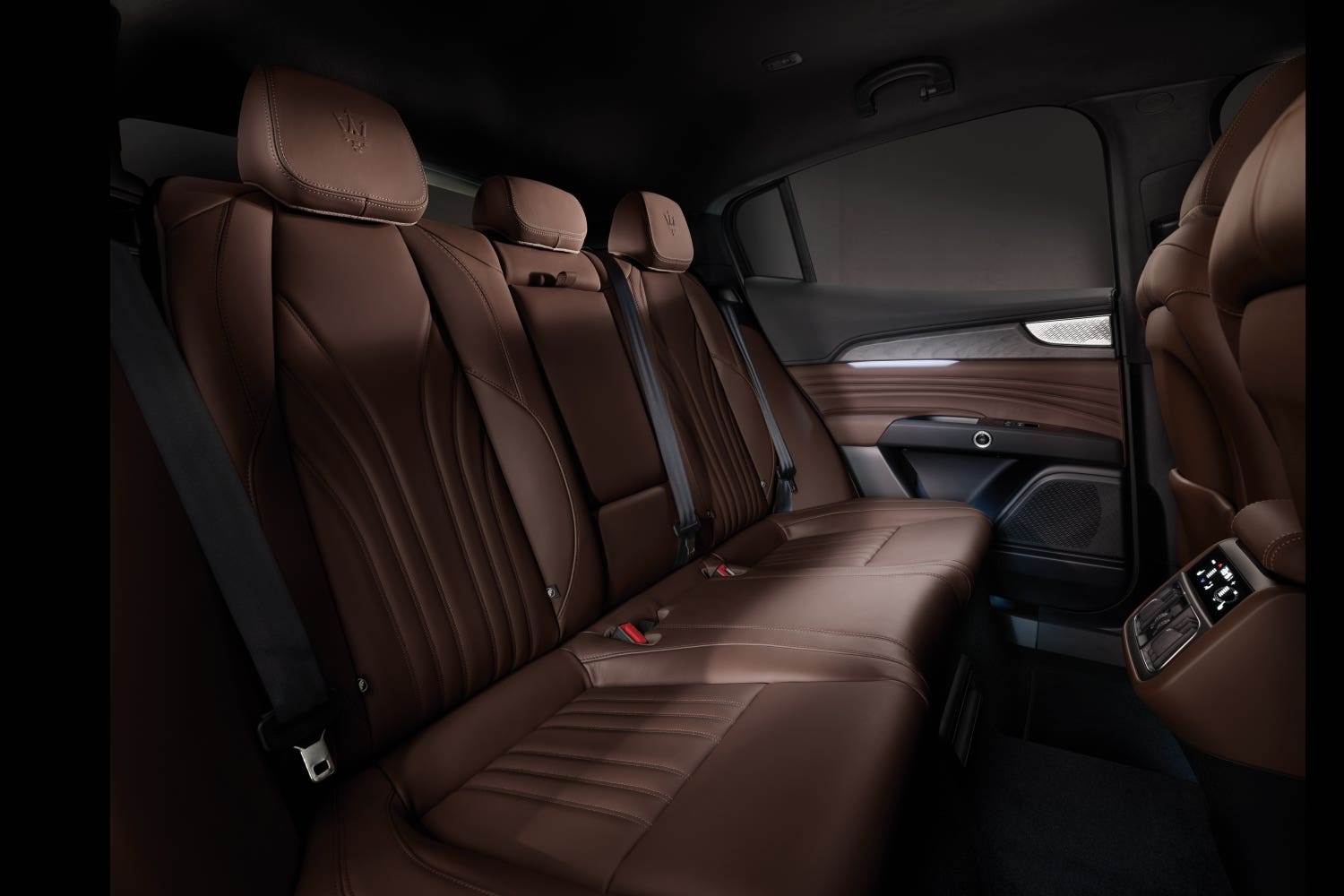 Gli interni rispecchiano questo carattere: un ambiente che trae ispirazione meno dal settore automobilistico quanto dall’interior design: sofisticato, inaspettato e non convenzionale. L’abitacolo presenta un inserto per la plancia in pelle ispirata alla lavorazione della pelle Saffiano, abbinato a inserti bruniti sulla consolle centrale e sui pannelli porta. Questi sono caratterizzati da un’insolita lavorazione laser che reinterpreta in chiave Maserati l’iconica Maglia Milano, caratteristica della migliore gioielleria e orologeria.