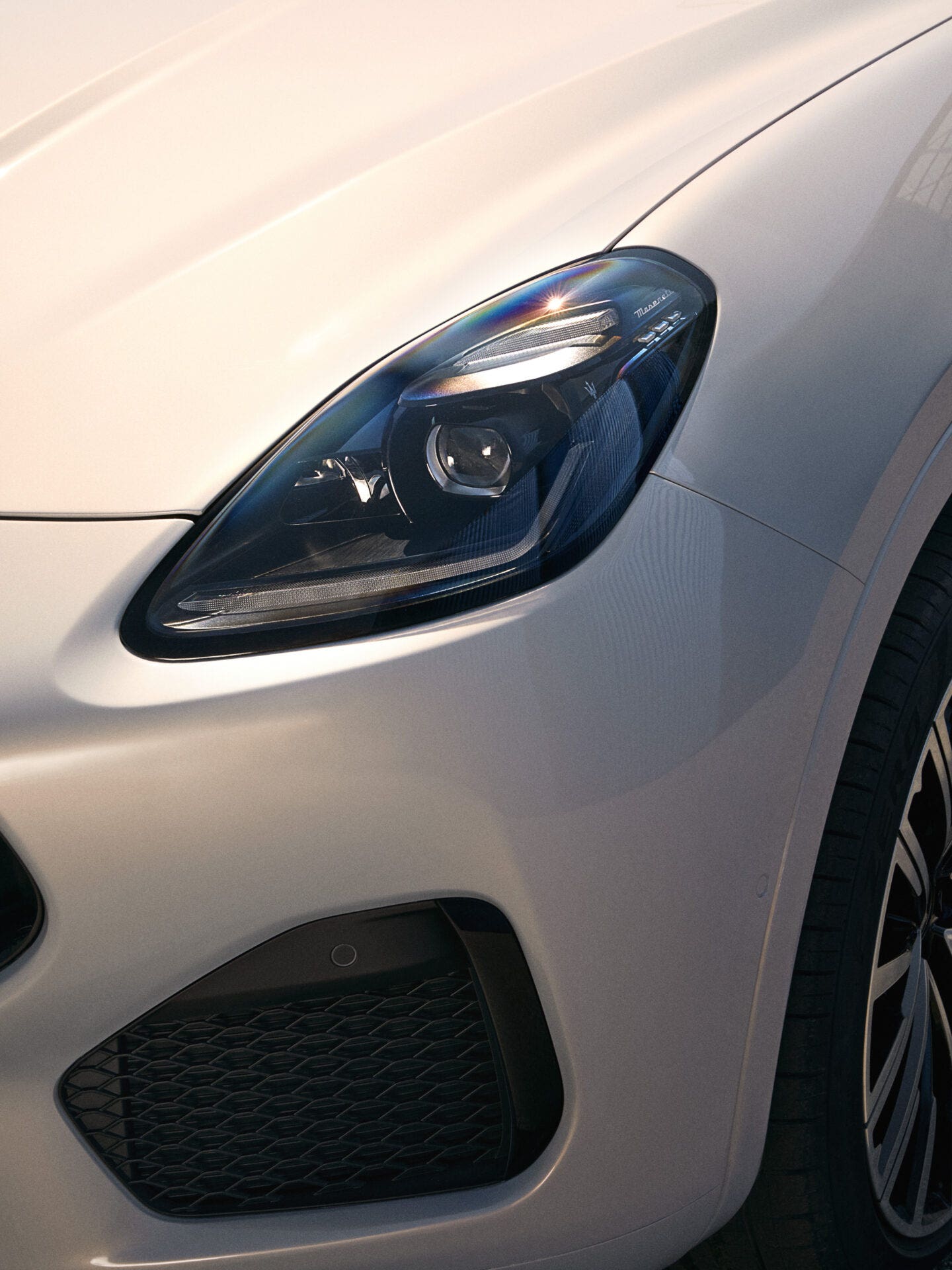 - Unique by Design: Maserati è immediatamente riconoscibile per le linee delle sue vetture e per il suo stile. L’approccio agli spunti di design evoca l’identità del marchio. Tutto inizia con l’iconico badge: il Tridente Maserati. Gli elementi distintivi del design costituiscono parte integrante del linguaggio stilistico generale, come nel montante C trapezoidale e nel design ispirato al Tridente dei nuovi cerchi.