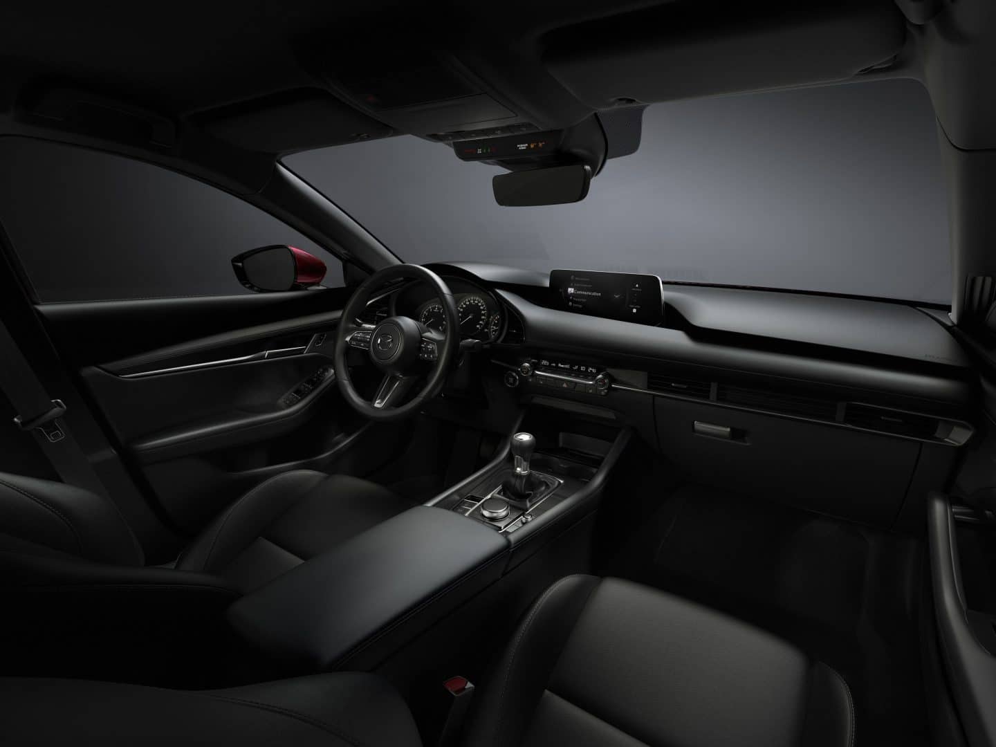 Il display centrale è stato ingrandito, passando dai precedenti 8,8 pollici di diagonale agli attuali 10,25 pollici utili per ottenere una maggiore visibilità. Lo schermo è accuratamente inclinato verso il guidatore, integrandosi perfettamente con le linee e i materiali disponibili su questa Mazda3 ed emergendo elegantemente dalla plancia. Questo esclusivo approccio progettuale enfatizza l’asse incentrato sul guidatore che negli interni va dalla parte anteriore a quella posteriore, esprimendo al contempo un secondo asse orizzontale che va dalla plancia al rivestimento delle porte per una sensazione avvolgente dedicata al guidatore e al passeggero e di sicurezza e connessione con la vettura.