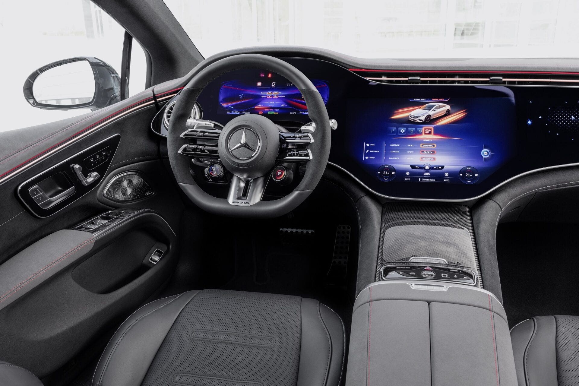 Complessivamente, la EQS firmata AMG può contare su una potenza di 658 CV con una coppia motrice massima di 950 Nm. Aggiungendo il pacchetto DYNAMIC PLUS AMG ed attivando la modalità RACE START, inoltre, è possibile portare la potenza massima fino a 761 CV mentre la coppia motrice raggiungerà quota 1.020 Nm. Di rilievo anche il livello prestazionale della nuova ammiraglia a zero emissioni di AMG.