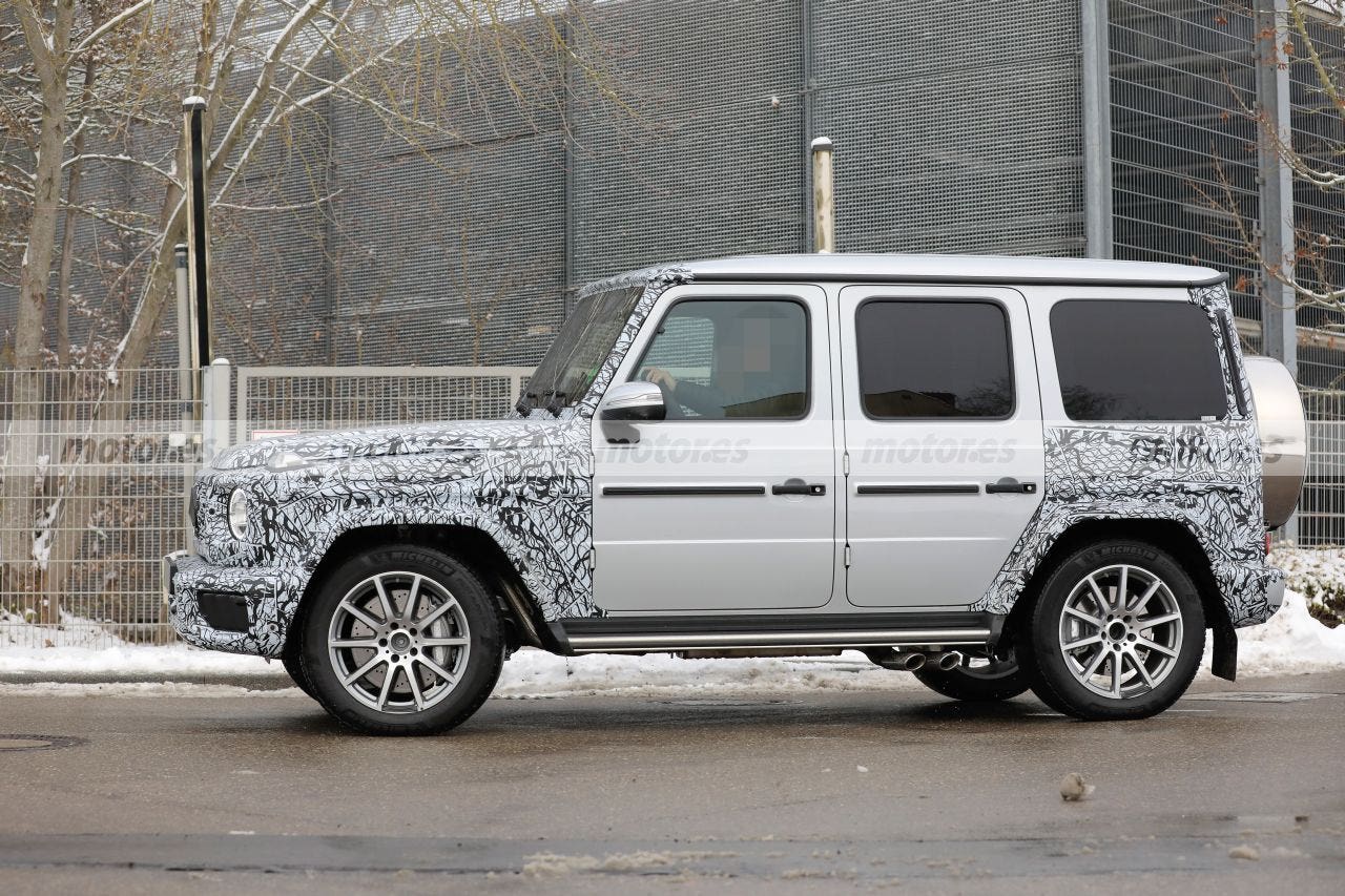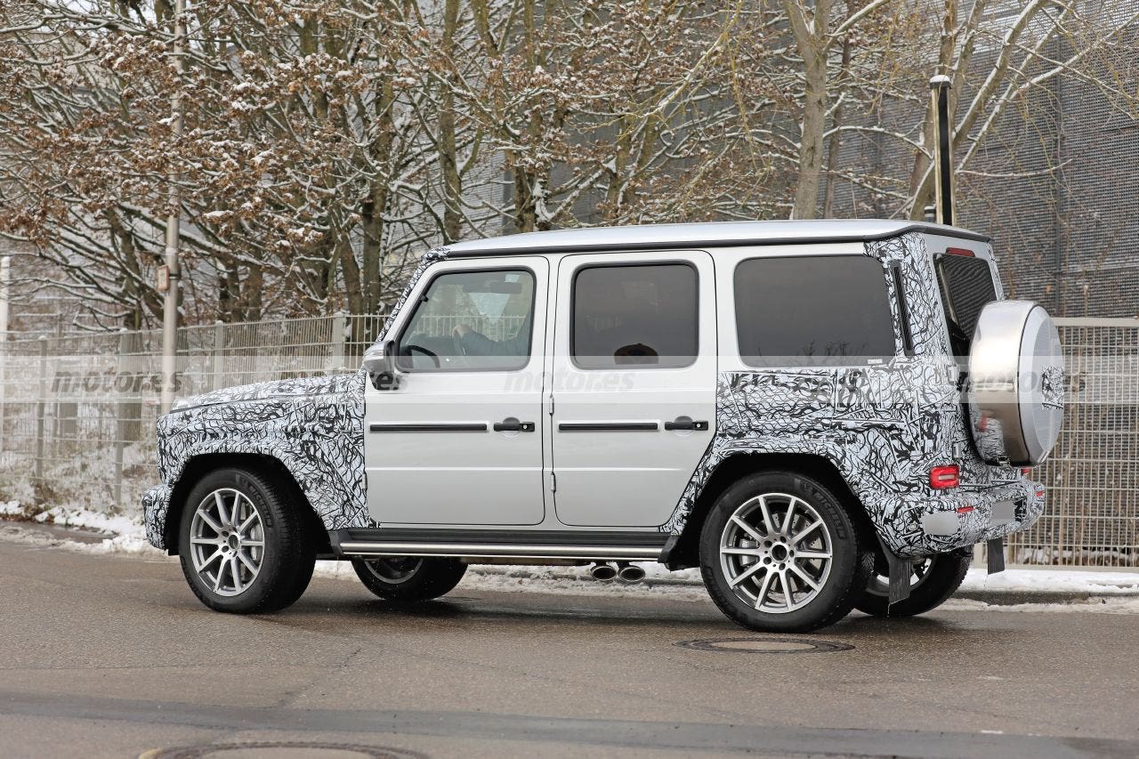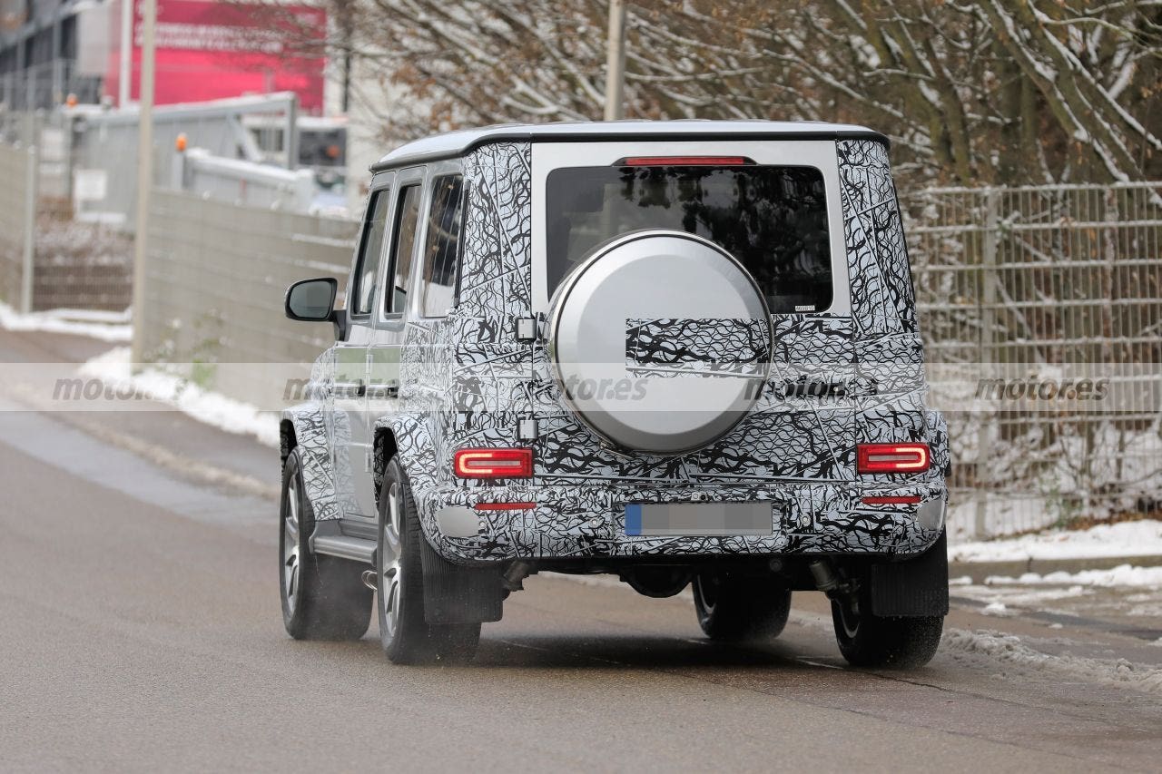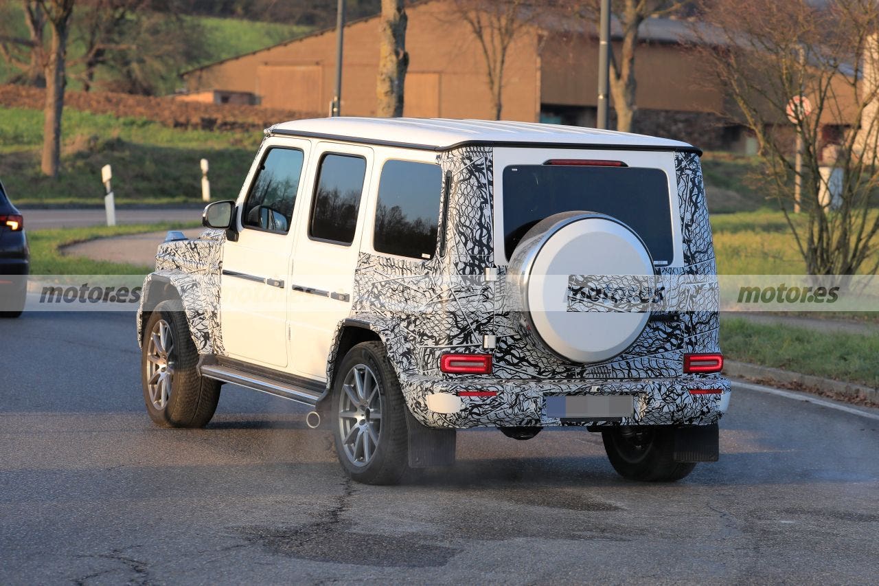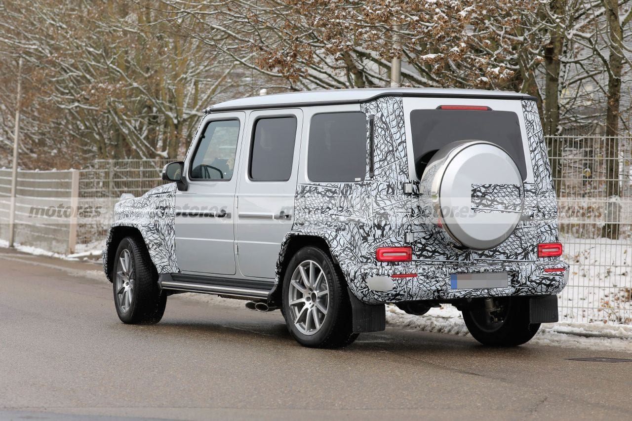 Anche le sue tre prese d’aria sono state ripulite e rivelano nuovi elementi verticali attivi che si apriranno e si chiuderanno a seconda delle esigenze in tema di raffreddamento della Mercedes-AMG G 63, optando per una maggiore efficienza in generale. I tecnici di Mercedes-AMG hanno ritoccato anche l’impianto di scarico, visto che le immagini mostrano i caratteristici scarichi che escono sotto il portellone posteriore ma solo sul lato sinistro; una delle differenze con il modello attualmente in vendita che ne ha invece due a sul lato destro.