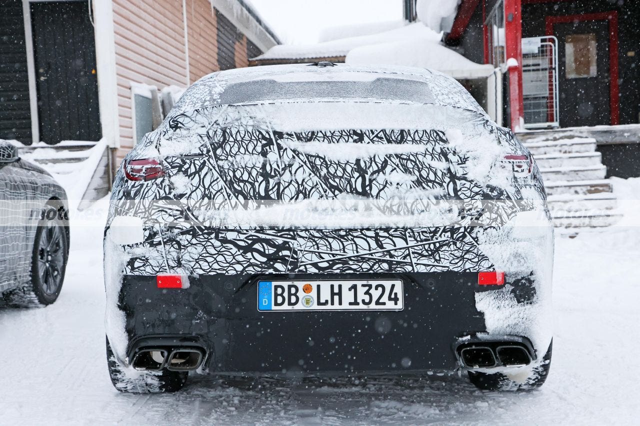 Perfettamente visibile anche lo spoiler posteriore a coda d’anatra, più pronunciato rispetto alle versioni convenzionali del nuovo GLC Coupé, così come gli elementi di scarico squadrati che ancora non combaciano perfettamente con i terminali sferici posti dietro il paraurti. Dettagli minori che vengono comunque presentati e gli aggiustamenti generali ancora non perfettamente corretti, visto che lo sviluppo è ancora in una fase non molto avanzata.