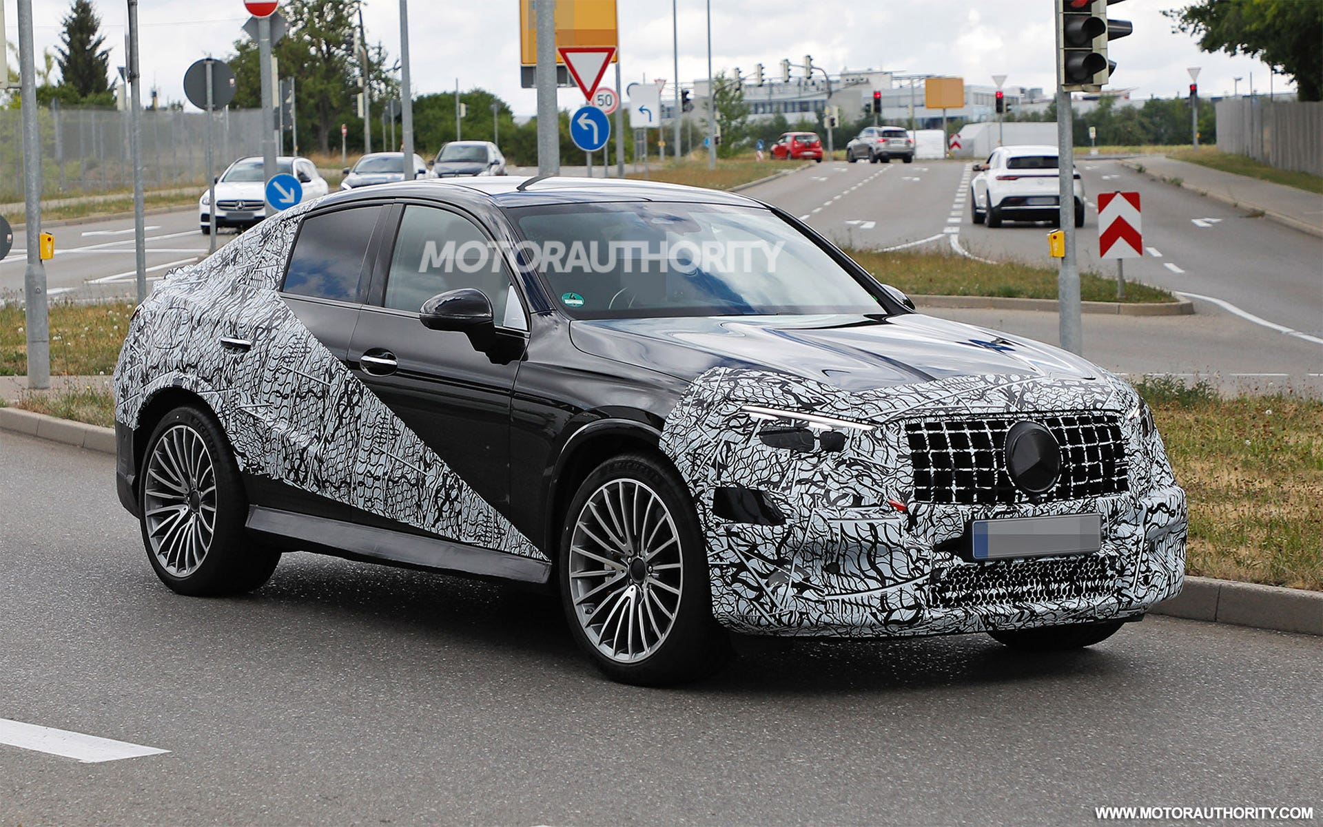 Queste sono le prime immagini scattate nelle vicinanze della sede del Costruttore della Stella, in Germania, praticamente con lo stesso livello di camouflage della variante tradizionale; il vinile copre infatti il frontale e pure la sezione posteriore, evitando di rivelare la sua estetica più aggressiva nonostante non si nasconda sotto un grande segreto. I suoi fari più sottili affiancano la griglia, mentre il paraurti più voluminoso rivela la forma delle prese d’aria sui lati, così come c’è un nuovo spoiler sul labbro inferiore.
