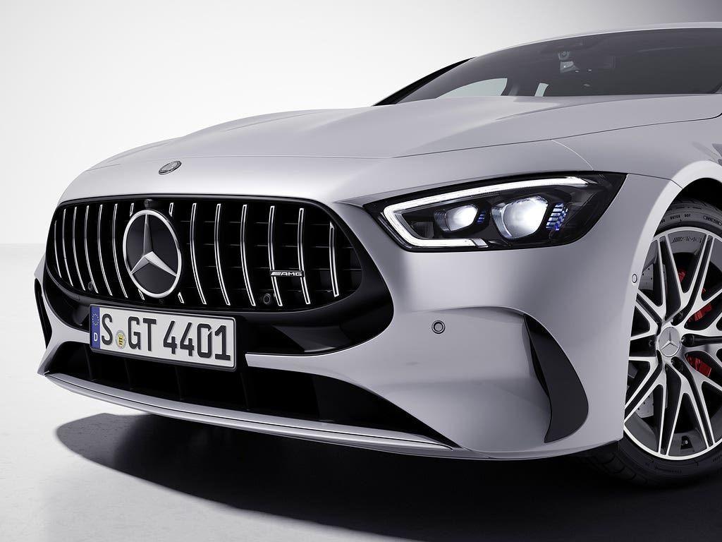 Ci sono caratteristiche aggiuntive per gli altri pacchetti di equipaggiamento opzionali. Nella variante base, lo splitter anteriore della Mercedes-AMG GT Coupé4 è ora anche in cromo lucido con il Chrome Package. La stessa logica di offerta vale per il Carbon Fiber Package: anche qui viene aggiunto lo splitter anteriore in fibra di carbonio. Con il pacchetto aerodinamico in combinazione con il pacchetto styling V8, lo splitter anteriore e i flic assumono una nuova forma. I clienti della Mercedes-AMG GT Coupé4 possono ora scegliere la nuova tonalità bianco opalite metallizzato dalla tavolozza dei colori. Il portafoglio di ruote e la gamma di rivestimenti rimangono invariati.