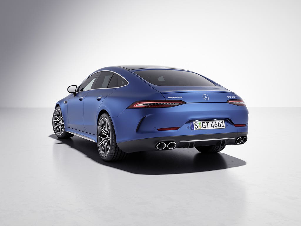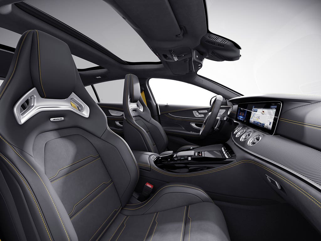 Il tetto scorrevole elettrico e l’opzione di ricarica wireless per lo smartphone tra i sedili posteriori della Mercedes-AMG GT Coupé4 sono ora disponibili già serie. Anche il sistema intelligente per l’infotainment digitale MBUX (Mercedes-Benz User Experience) è stato aggiornato con un nuovo look, schermi dedicati AMG ridisegnati e funzioni configurabili individualmente. In combinazione con il sistema audio surround Burmester opzionale o il sistema audio surround Burmester high-end 3D, Dolby Atmos introduce anche una nuova esperienza sonora. La base per l’esperienza di guida sportiva della Mercedes-AMG GT Coupé4 è fornita dall’invariato motore a sei cilindri in linea da 270 kW (367 cavalli) o 320 kW (435 cavalli) da 3,0 litri con doppio turbocompressore e alternatore di avviamento integrato.