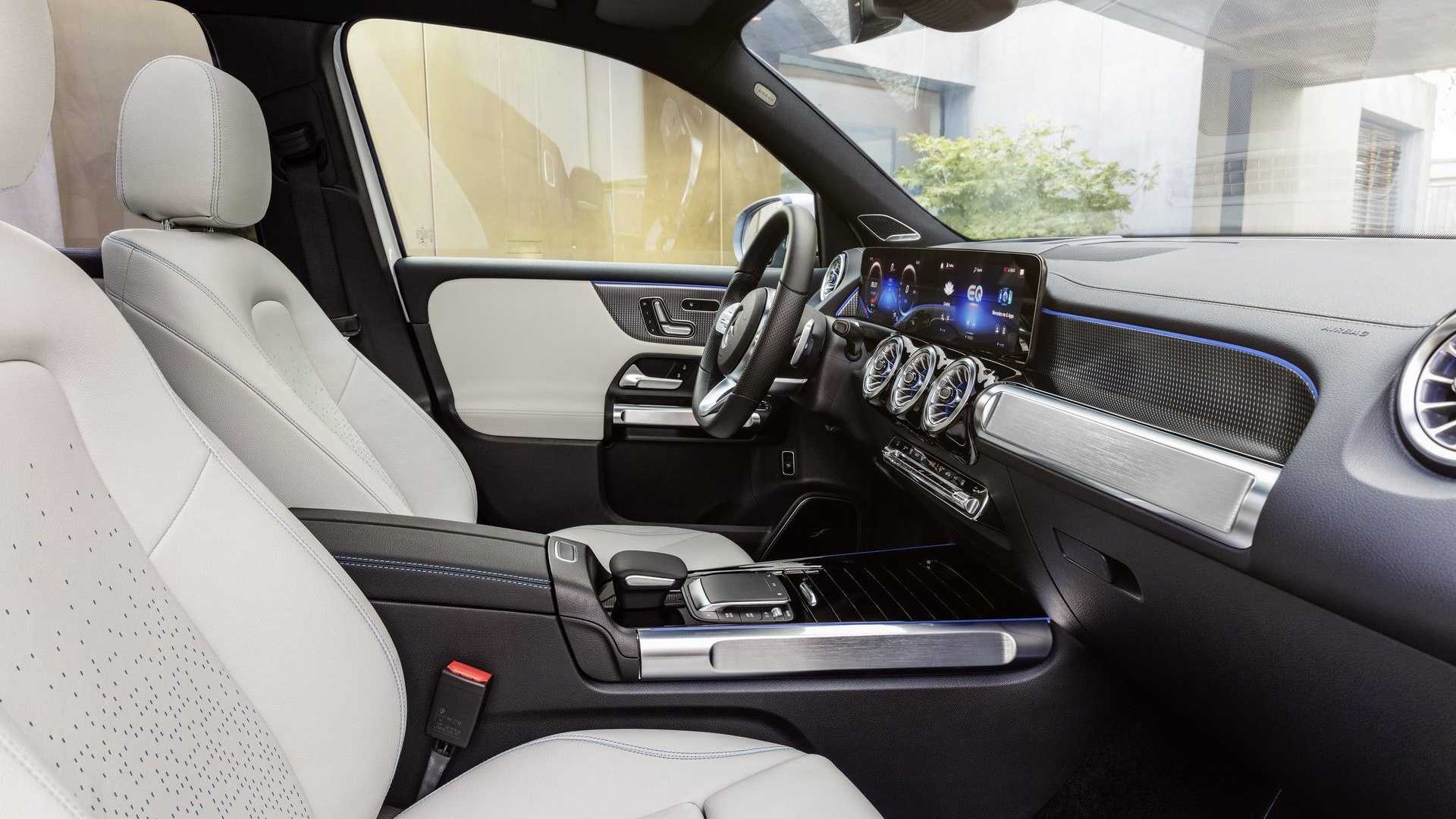 Ad arricchire la dotazione c’è il Pacchetto Night che costa 549 euro, aggiungendo i cristalli laterali posteriori e il lunotto oscurati, i cerchi in lega da 18 pollici a 5 doppie razze verniciati in nero e i roof rails neri. Di serie, inoltre, EQB arriva con la livrea Nero Notte ma è possibile personalizzare il SUV scegliendo tra nove diverse tinte. L’abitacolo interno, invece, include di serie dei rivestimenti in tessuto in varie colorazioni ma anche in questo caso è possibile optare per nuove soluzioni.