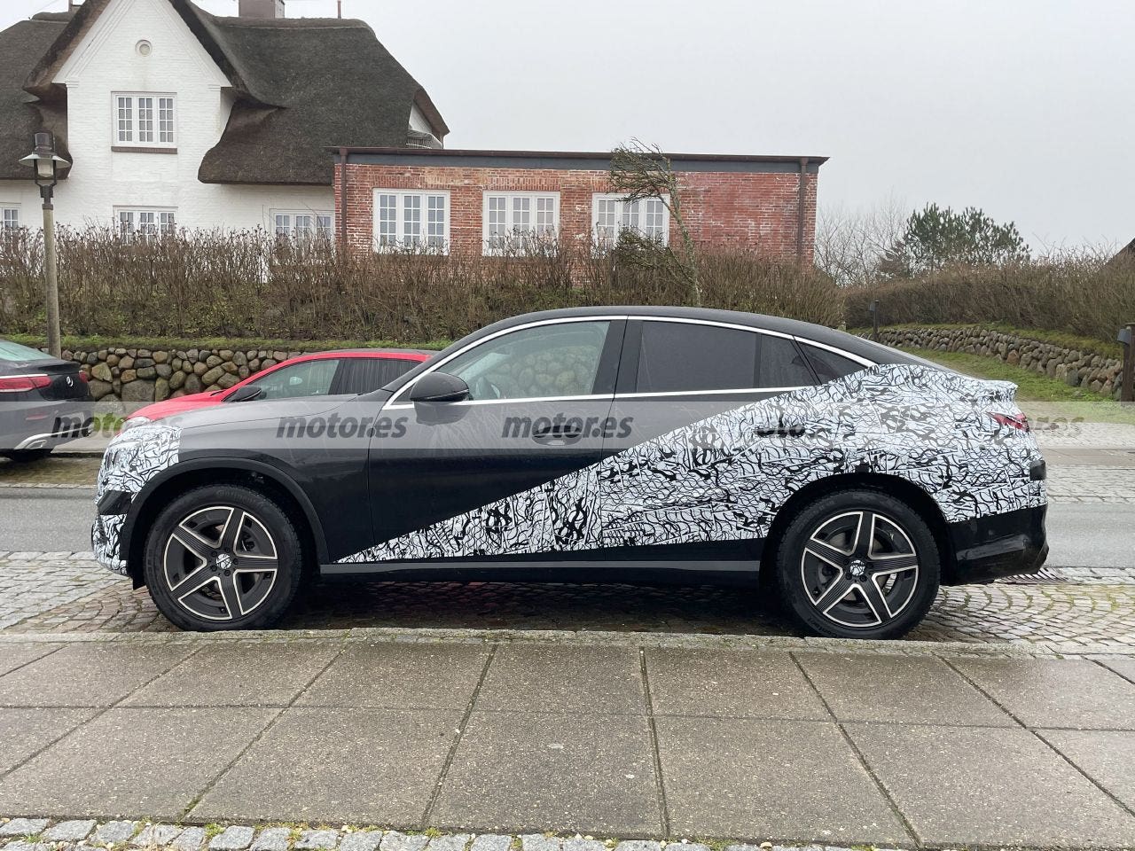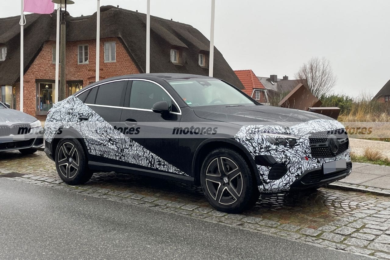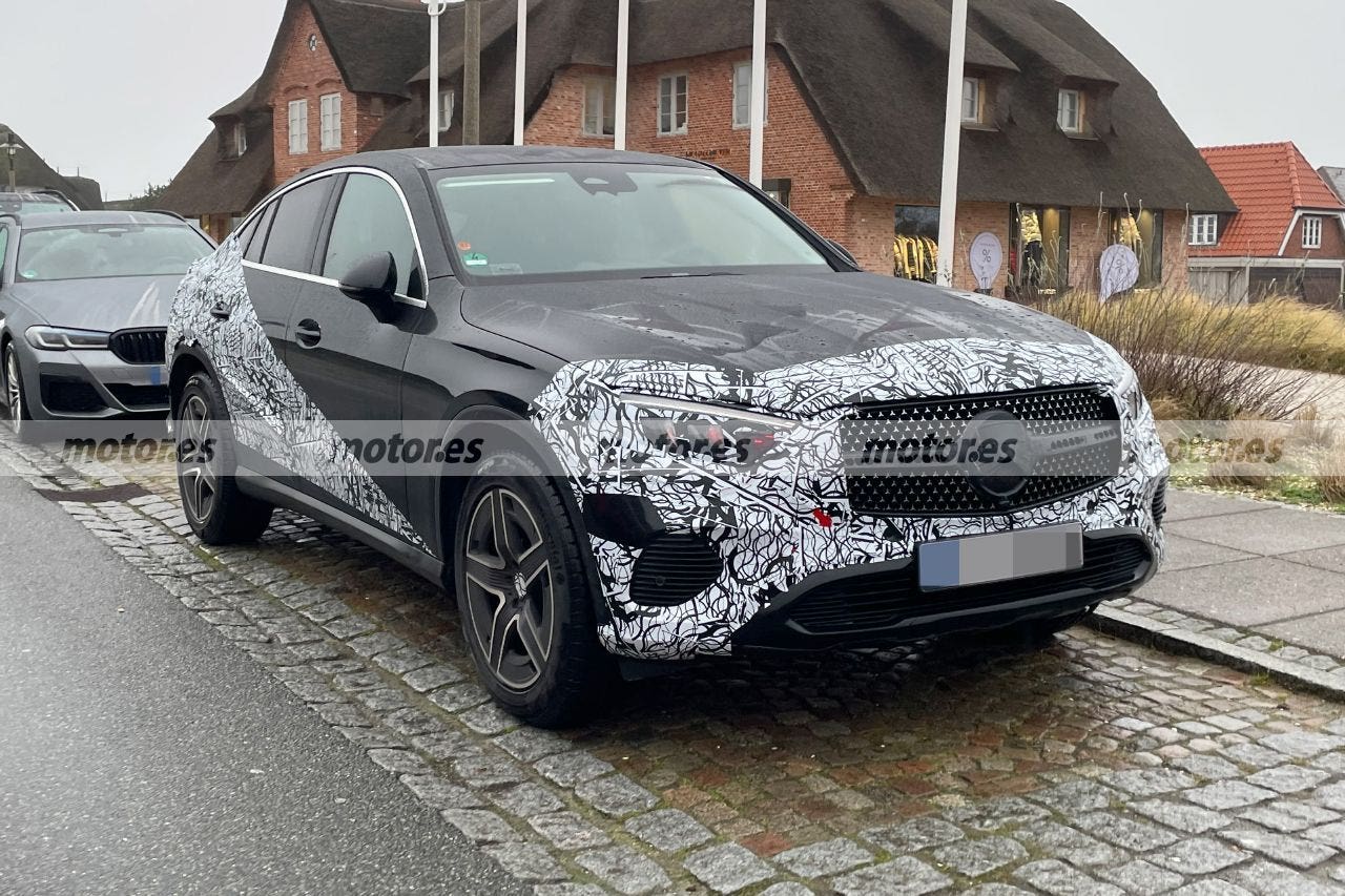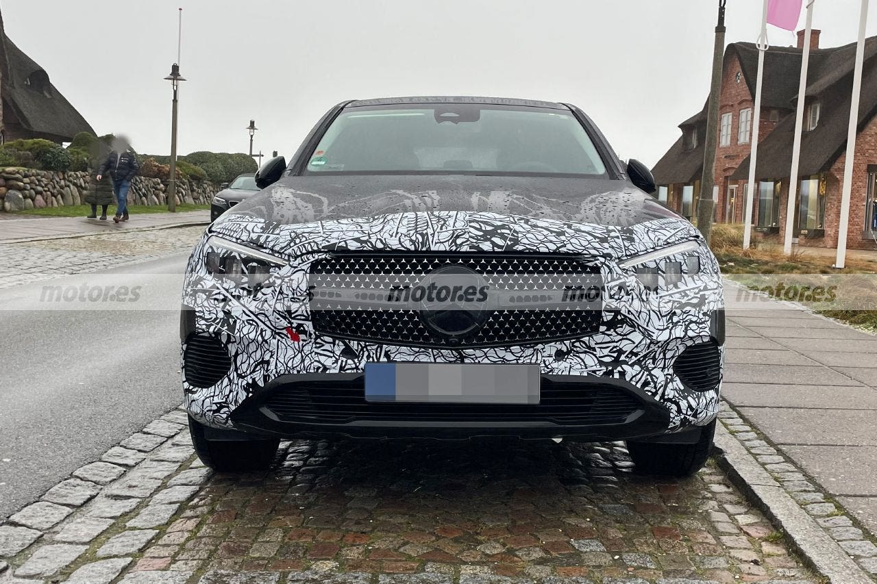 Queste nuove foto spia della nuova Mercedes GLC Coupé parcheggiata ci permettono di osservare più da vicino il suo nuovo stile più moderno che, nonostante il camuffamento, lascia già in vista alcuni dettagli interessanti. Il frontale, ad esempio, non presenta modifiche rispetto al nuovo Mercedes GLC, poiché i suoi fari orizzontali e leggermente cuneiformi sono identici. È presente anche la griglia “AMG Line” con le sue molteplici stelle cromate, mentre il paraurti presenta il design più essenziale della caratterizzazione “Avantgarde”.