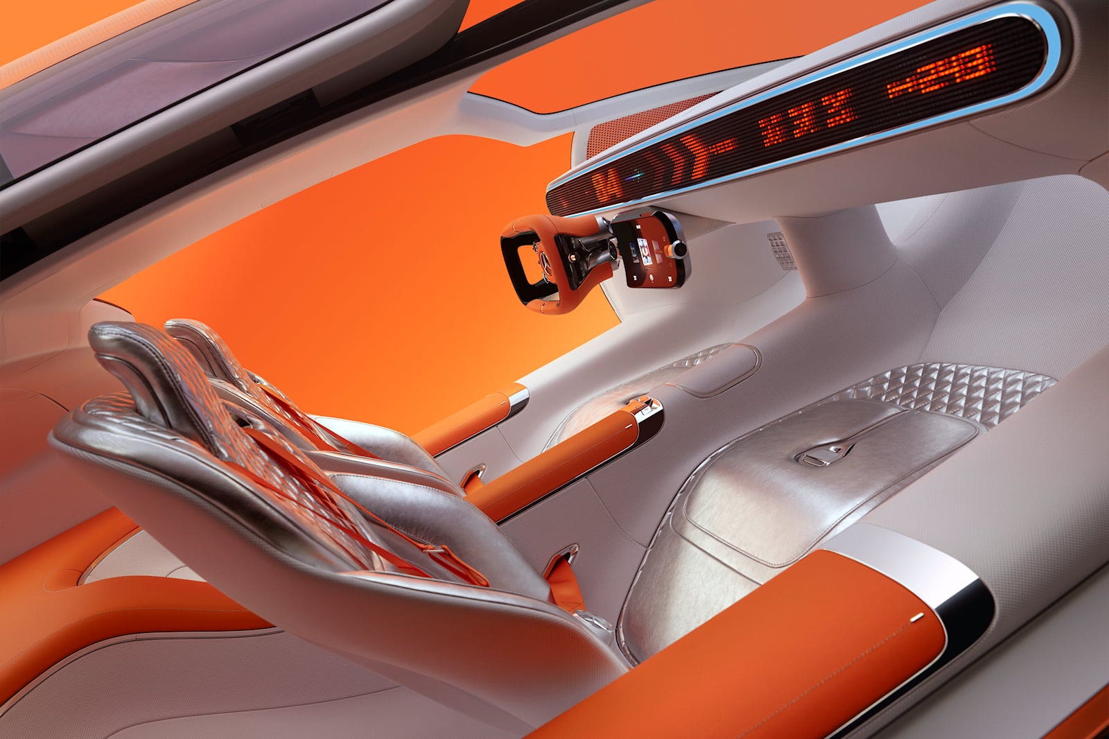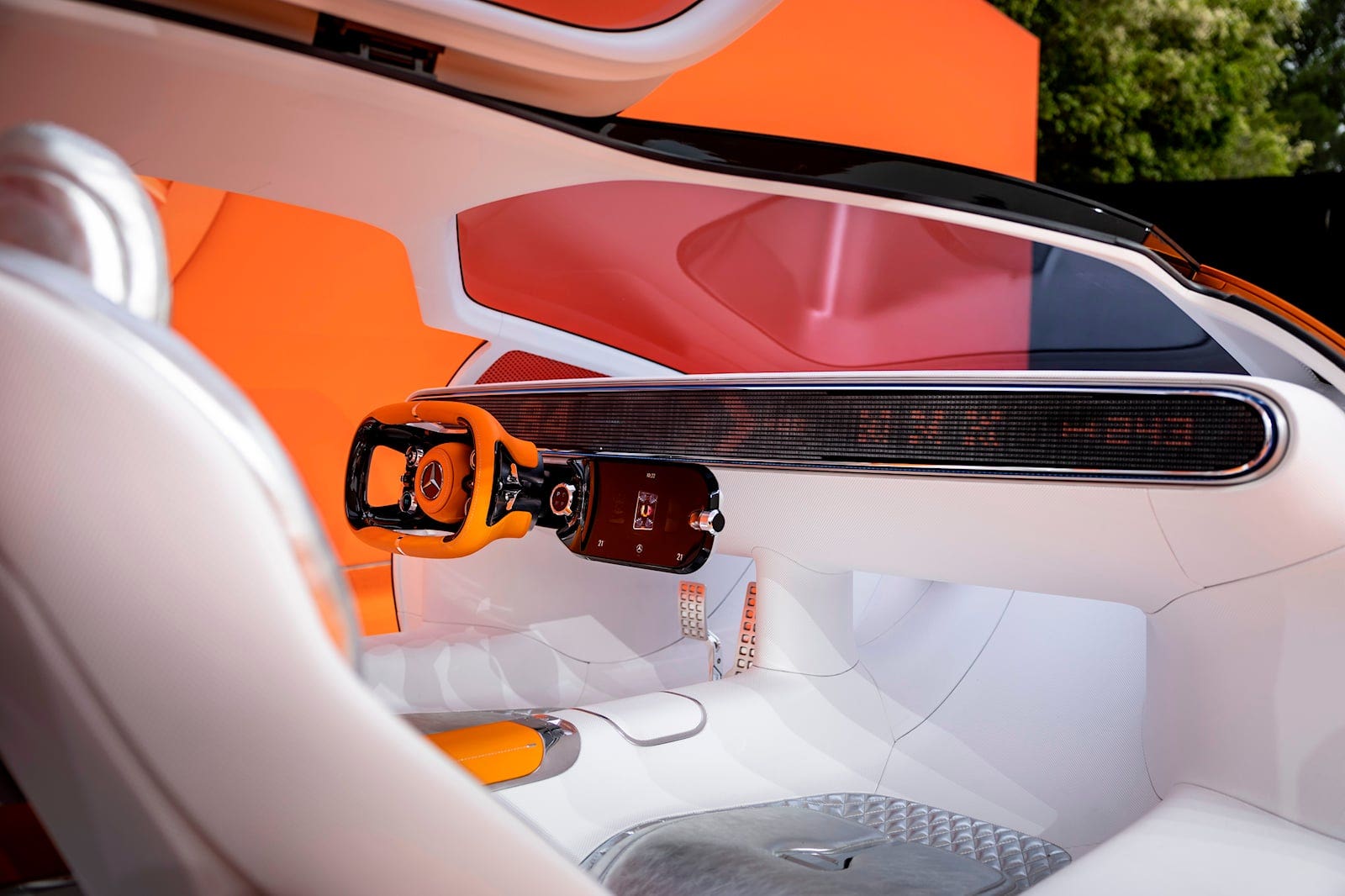 Guardando la One-Eleven di lato, spiccano due cose. Innanzitutto, hai le porte ad ali di gabbiano, che sono un ritorno alla 300 SL e alla C 111. Ma la vera novità è il nuovissimo motore a flusso assiale YASA ad alte prestazioni e la batteria a celle cilindriche raffreddate a liquido.