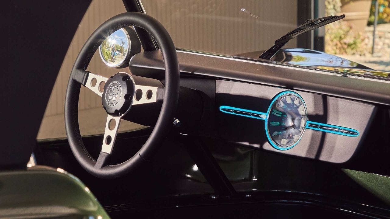 Il brand ha conservato lo stile iconico firmato Bruce Meyers, sebbene abbia aggiunto alcuni dettagli più moderni e parte anche del suo nuovo concept all’interno. Ad esempio, una nuova presa d’aria nella parte anteriore, mentre sono stati aggiornati anche i passaruota, anche se passano inosservati. Il contrario è vero nella parte posteriore, dove le luci posteriori ovali sono a LED e presentano un’illuminazione più profonda e attraente. Ha un tetto rigido smontabile e un interno con un cruscotto, adattato ai nuovi tempi, digitale ma che ricorda il passato con elementi circolari irrinunciabili.